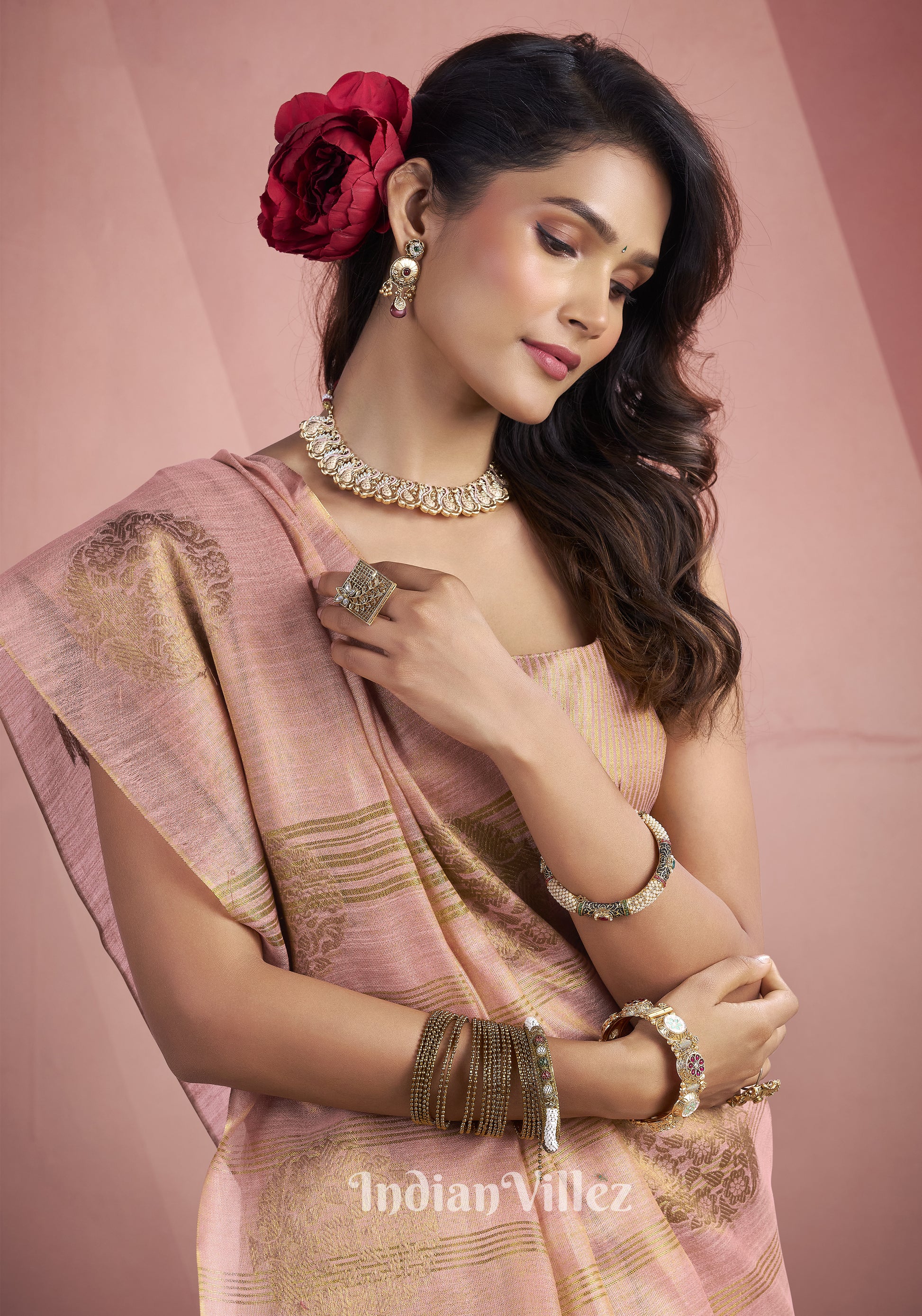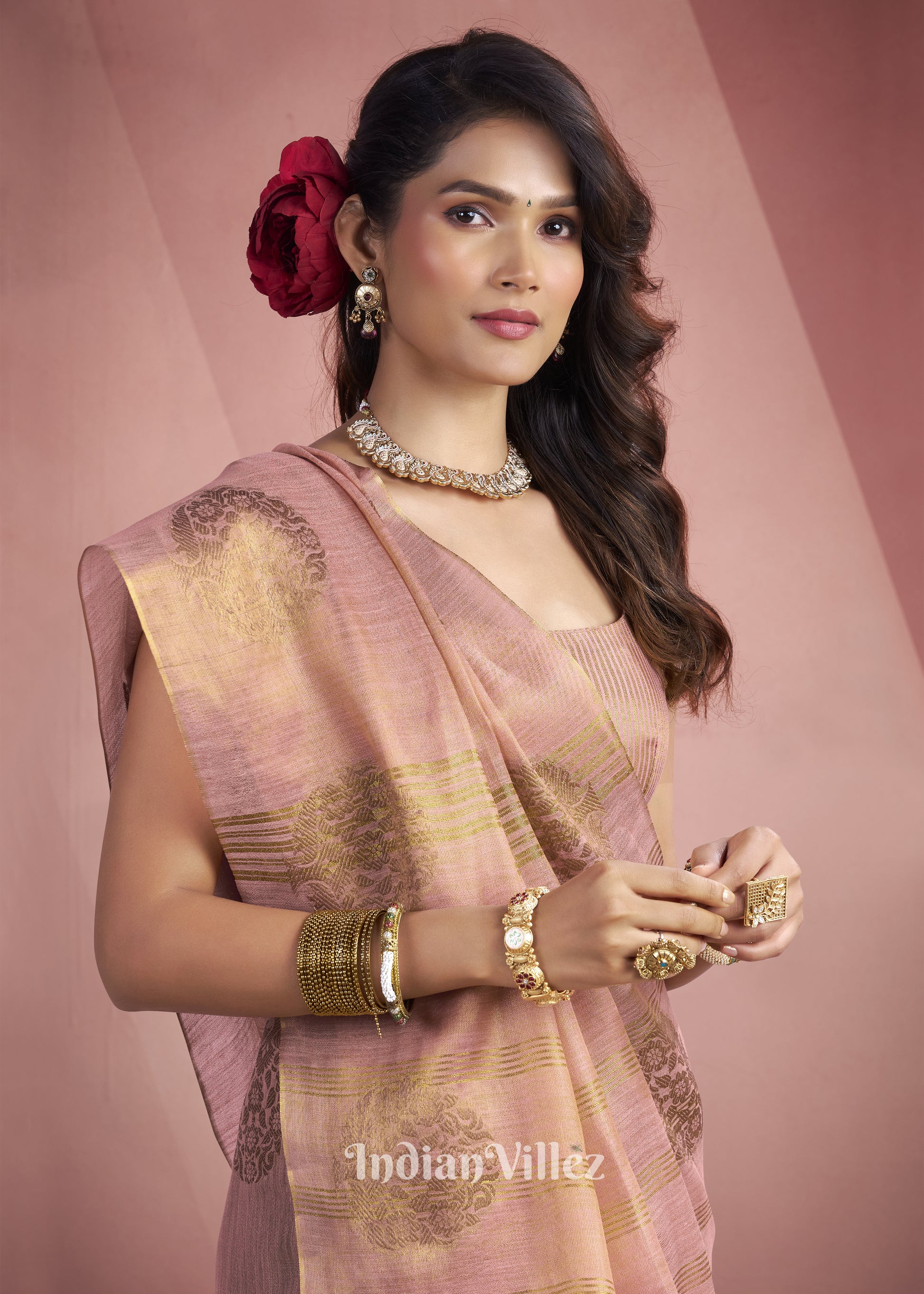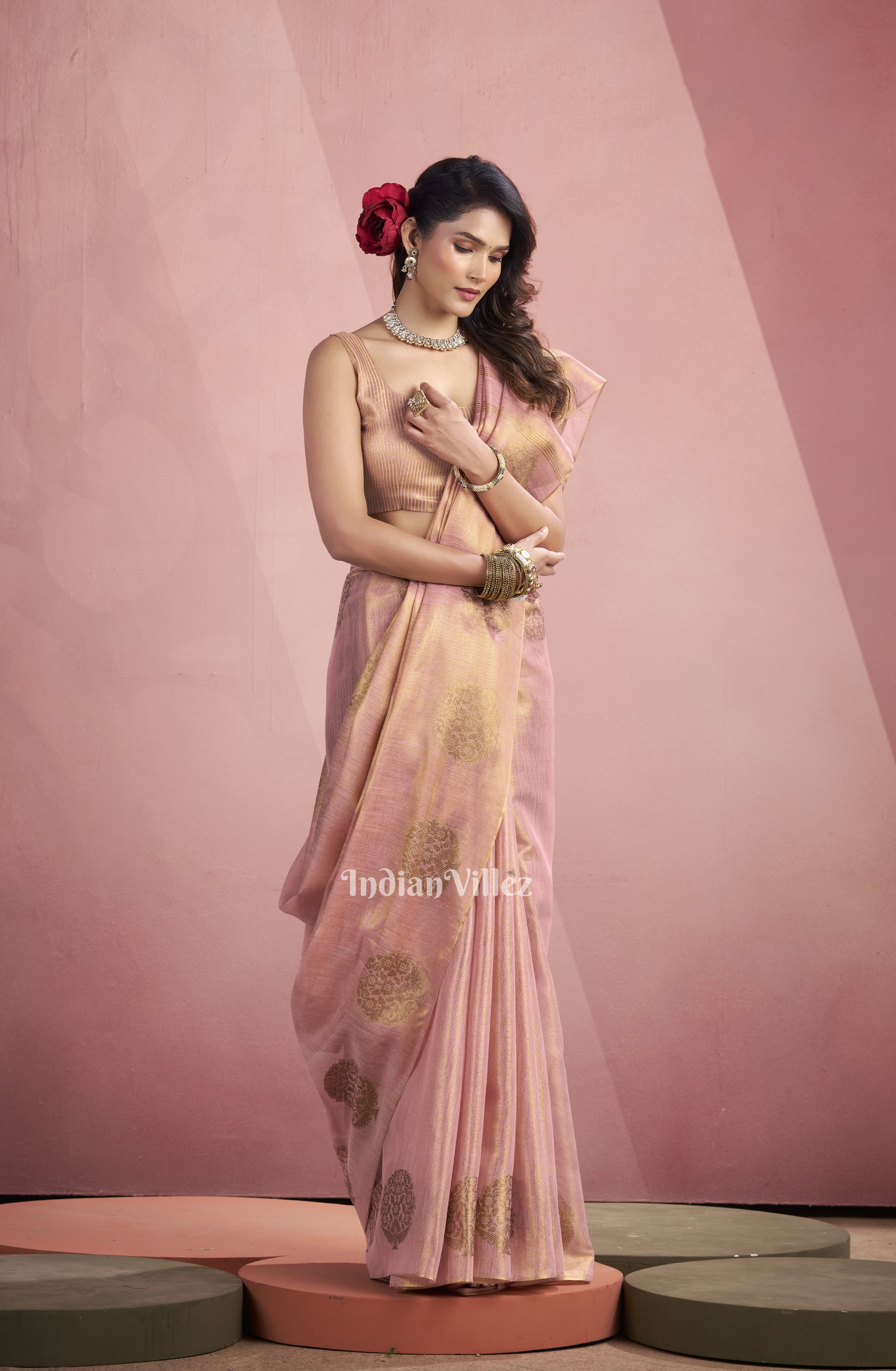 Baby Pink Tissue Silk Zari Woven Saree