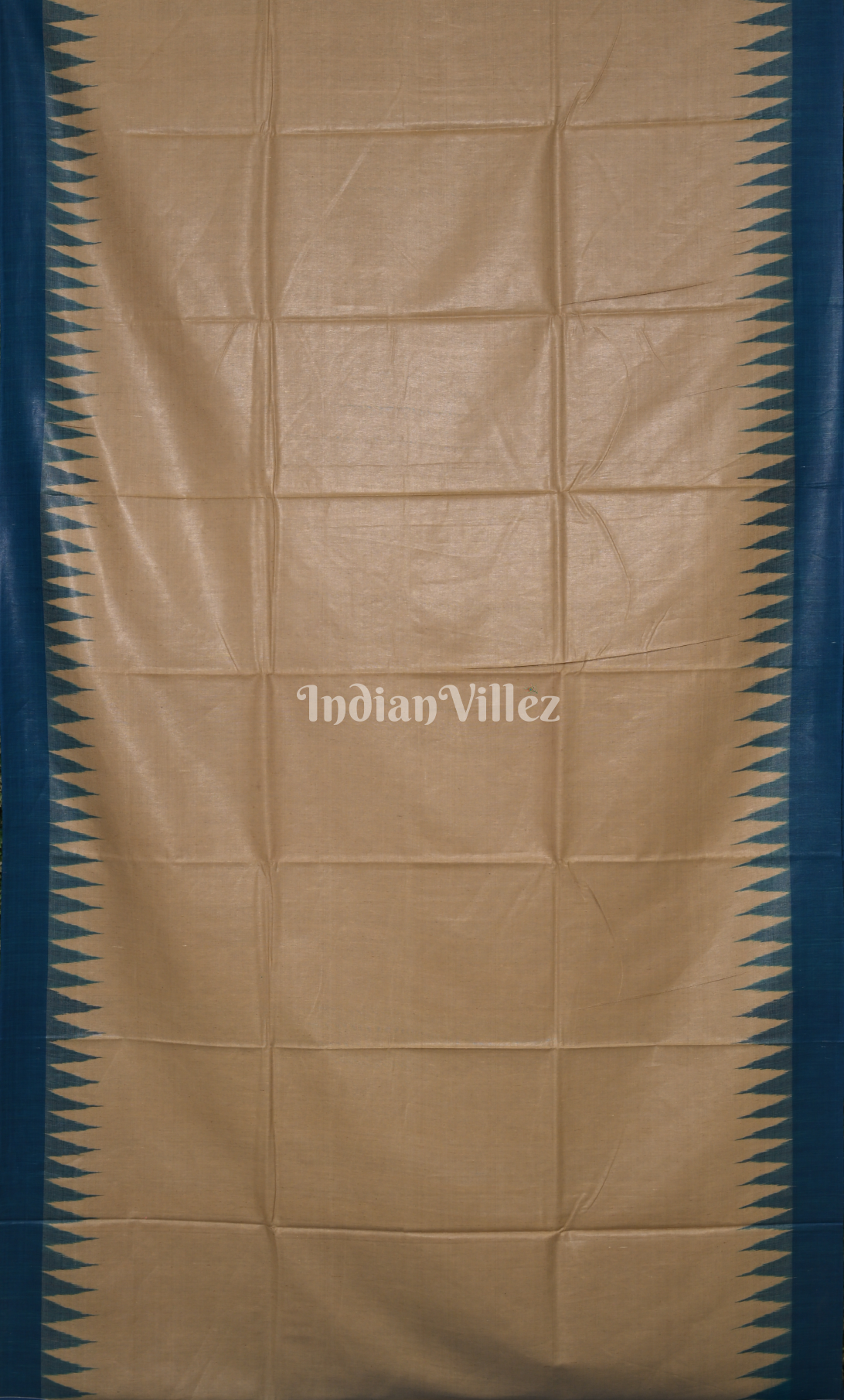 Beige Gopalpur Tussar Silk Saree with Blue Temple Border & Anchal