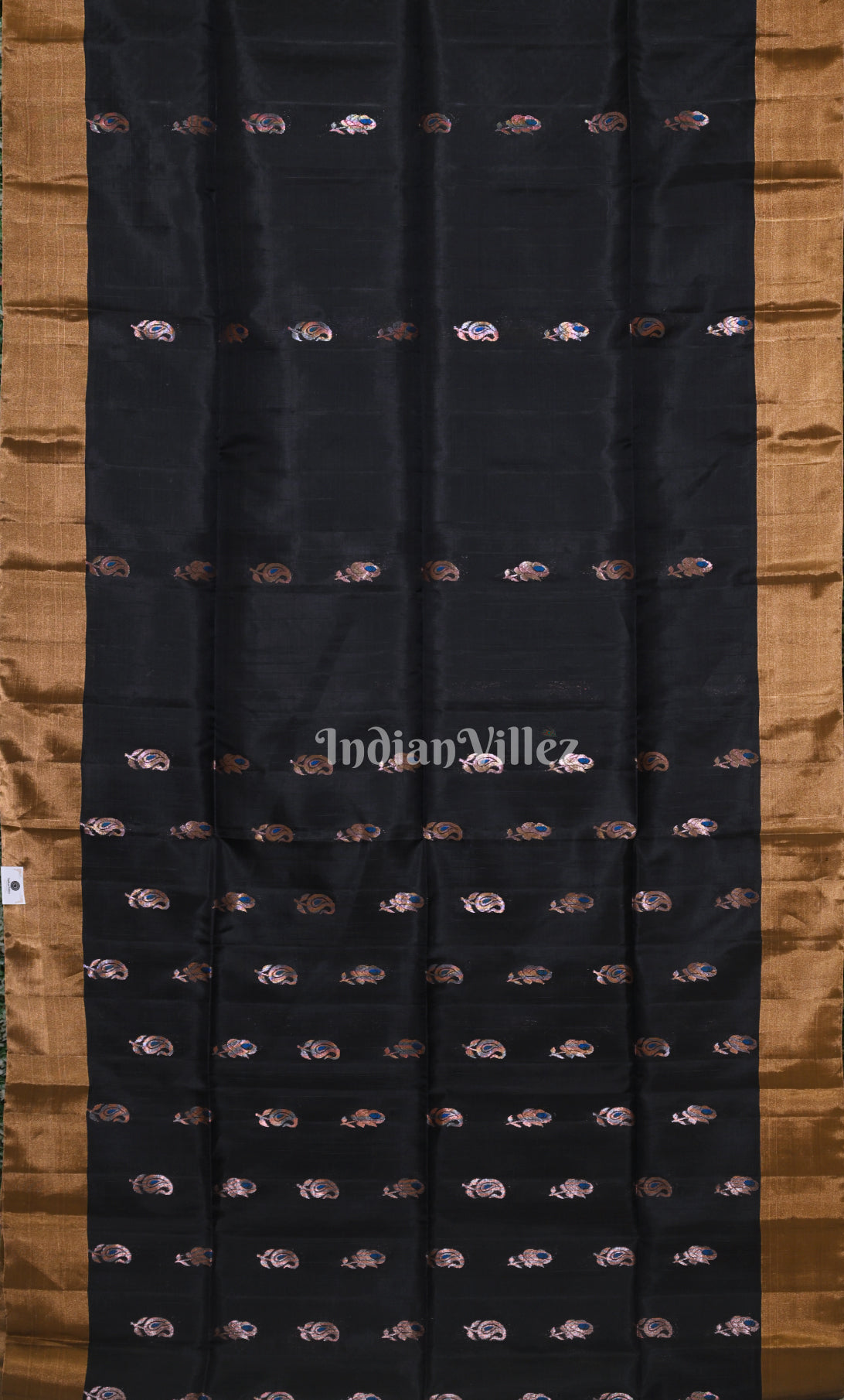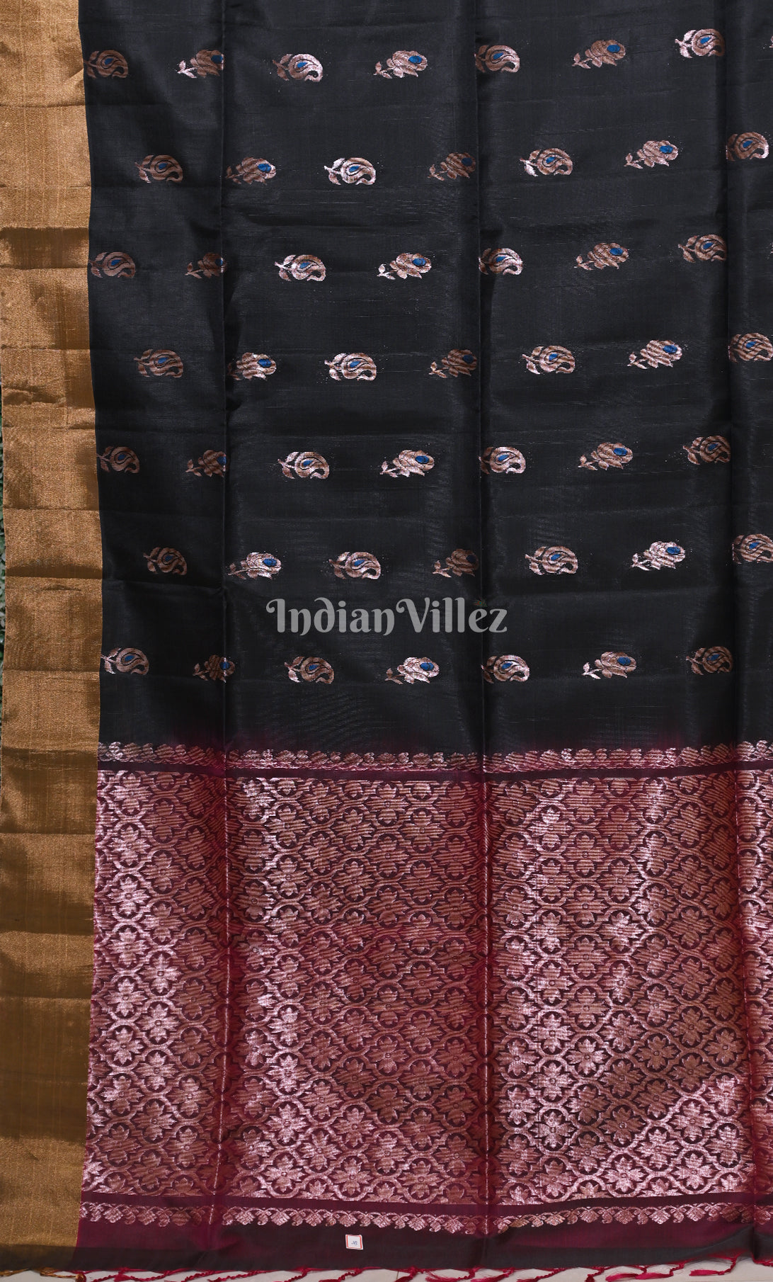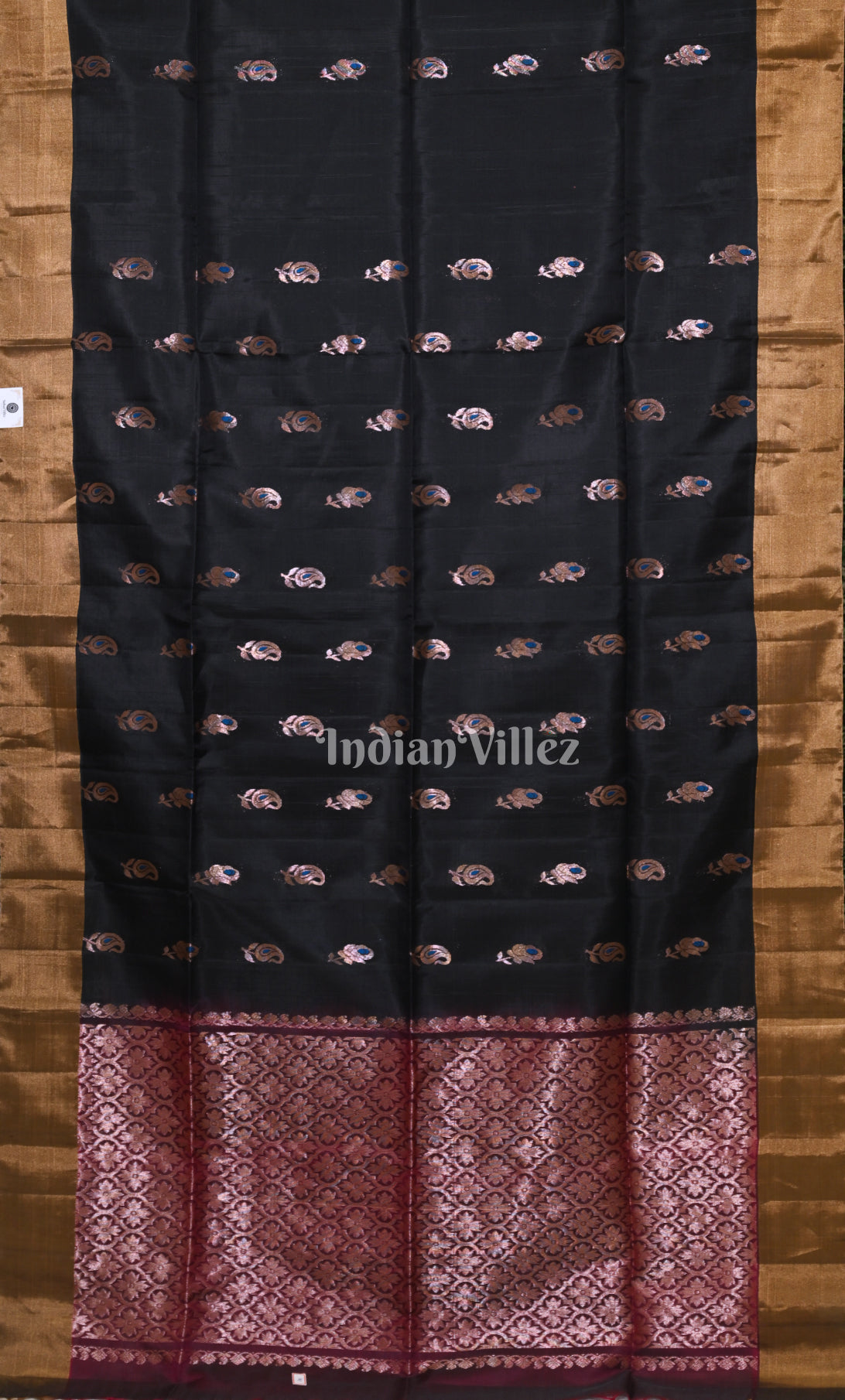 Black maroon Paisely Pure Kanjivaram Soft Silk Saree