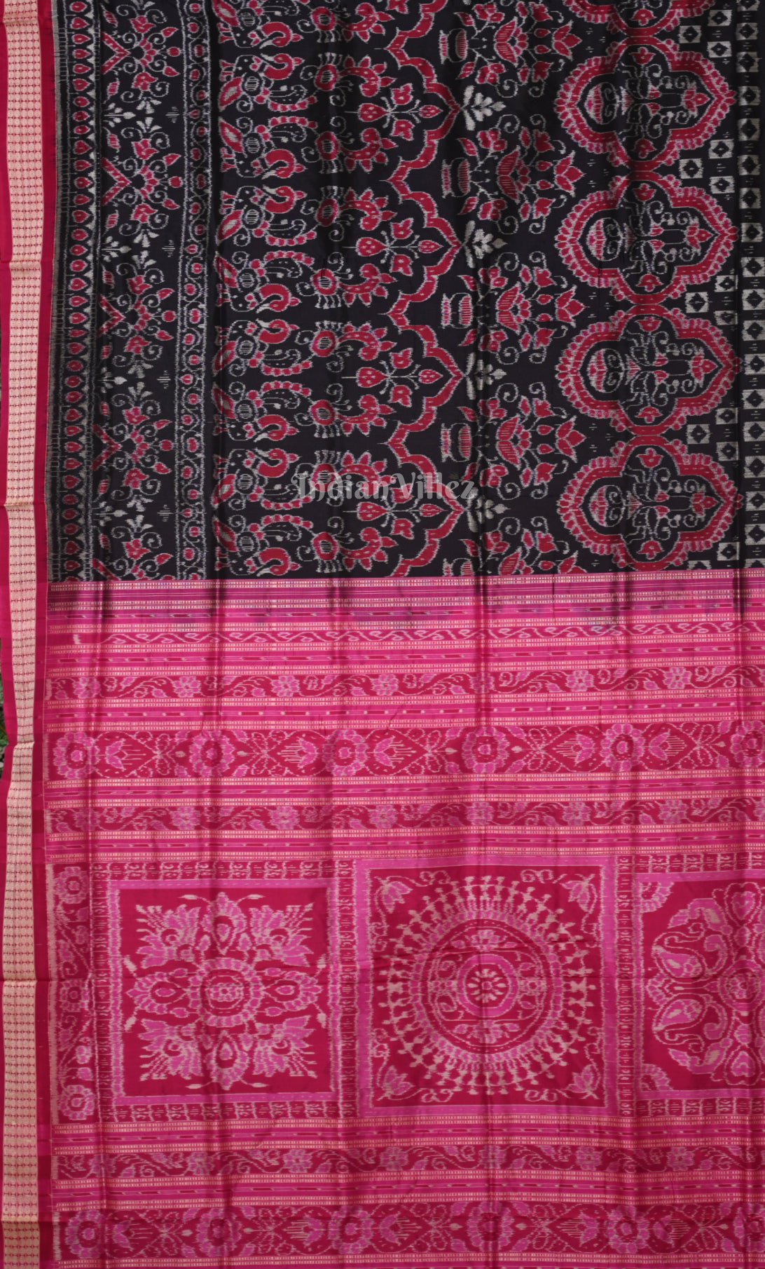 Black Pink Jhoti Motif Odisha Ikat Sambalpuri Silk Saree