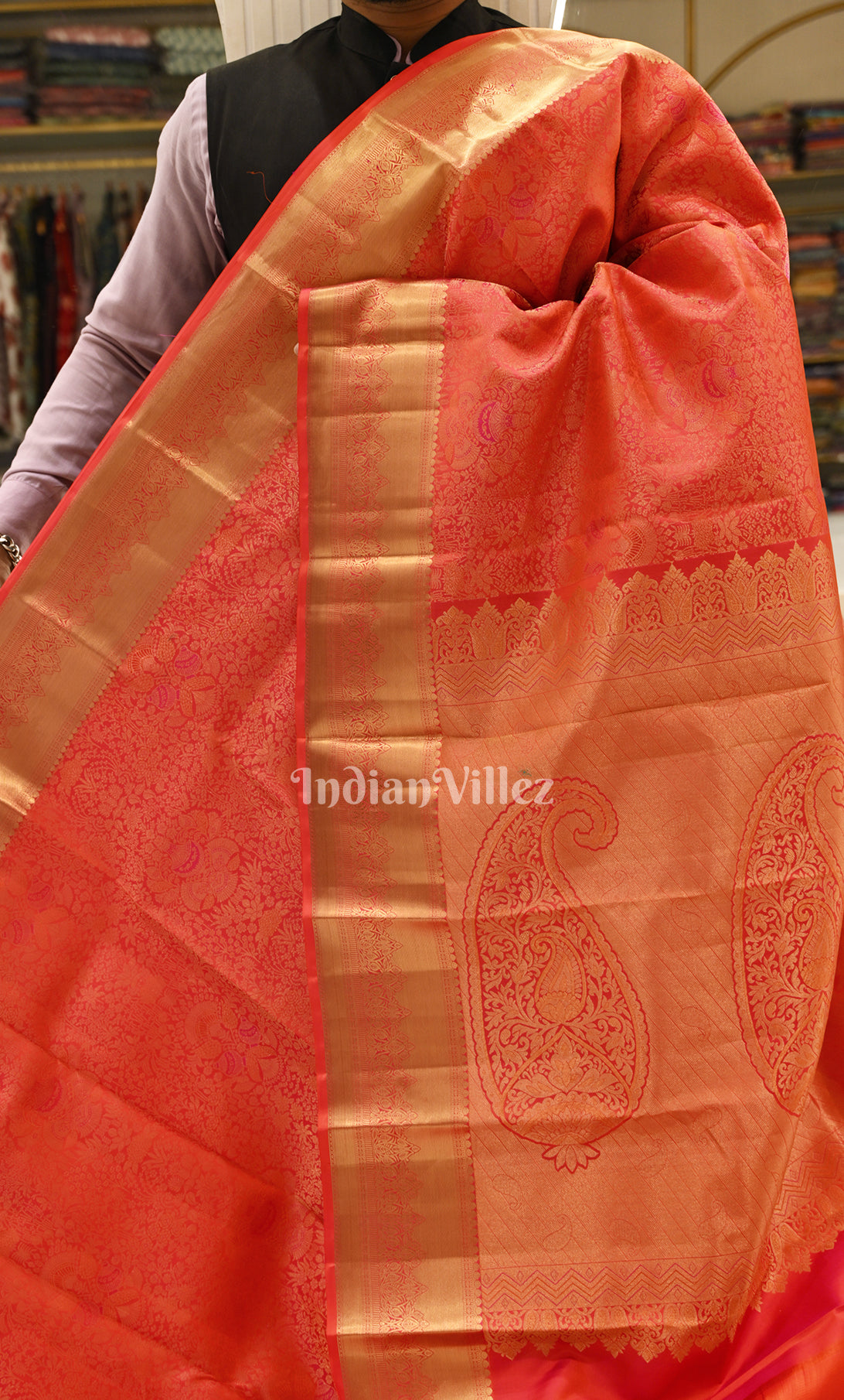 Blood Red with Golden Floral Brocade Pure Kanjivaram Silk Saree