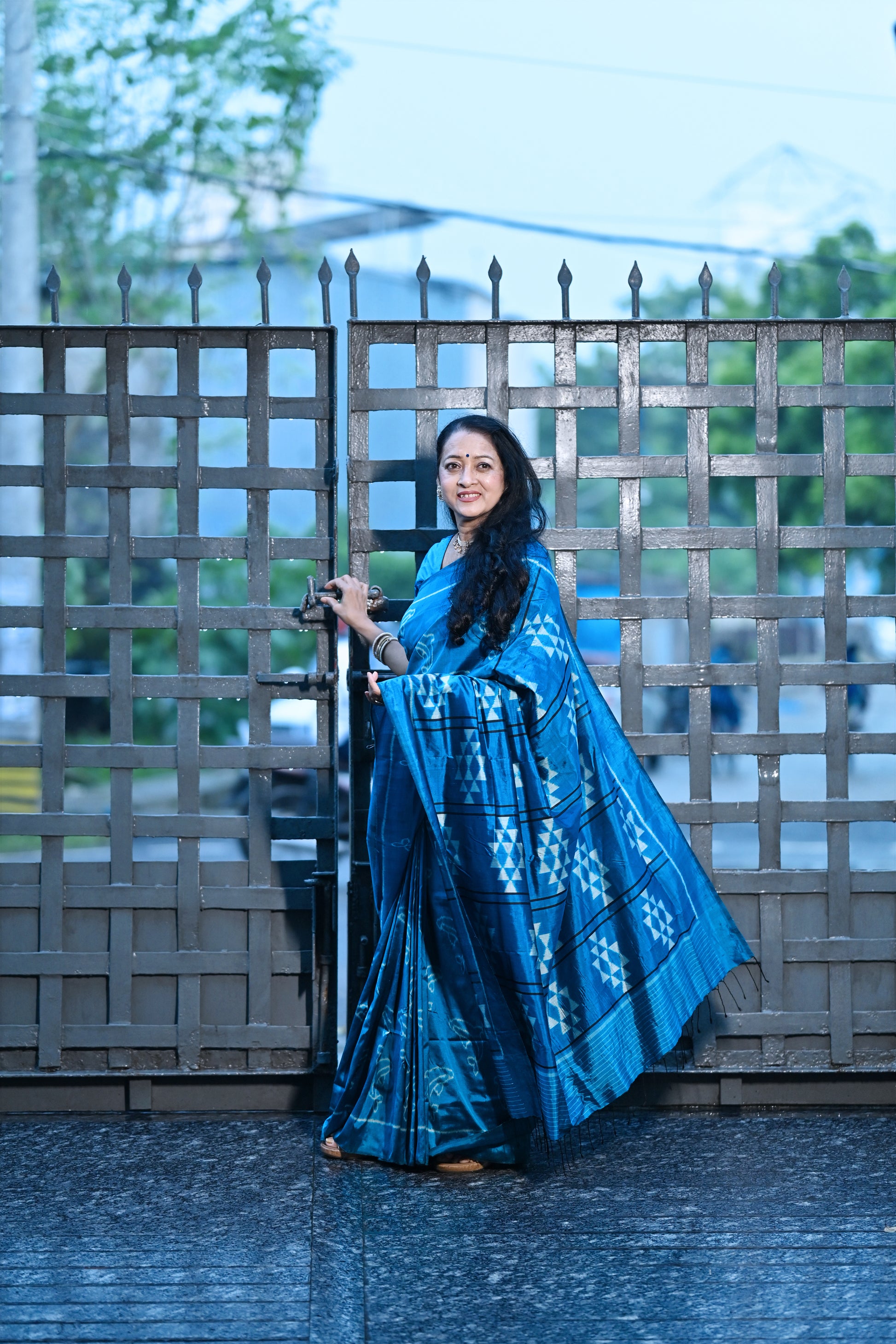 Blue Copper sulphate Dolphin Theme Contemporary Designer Silk Saree