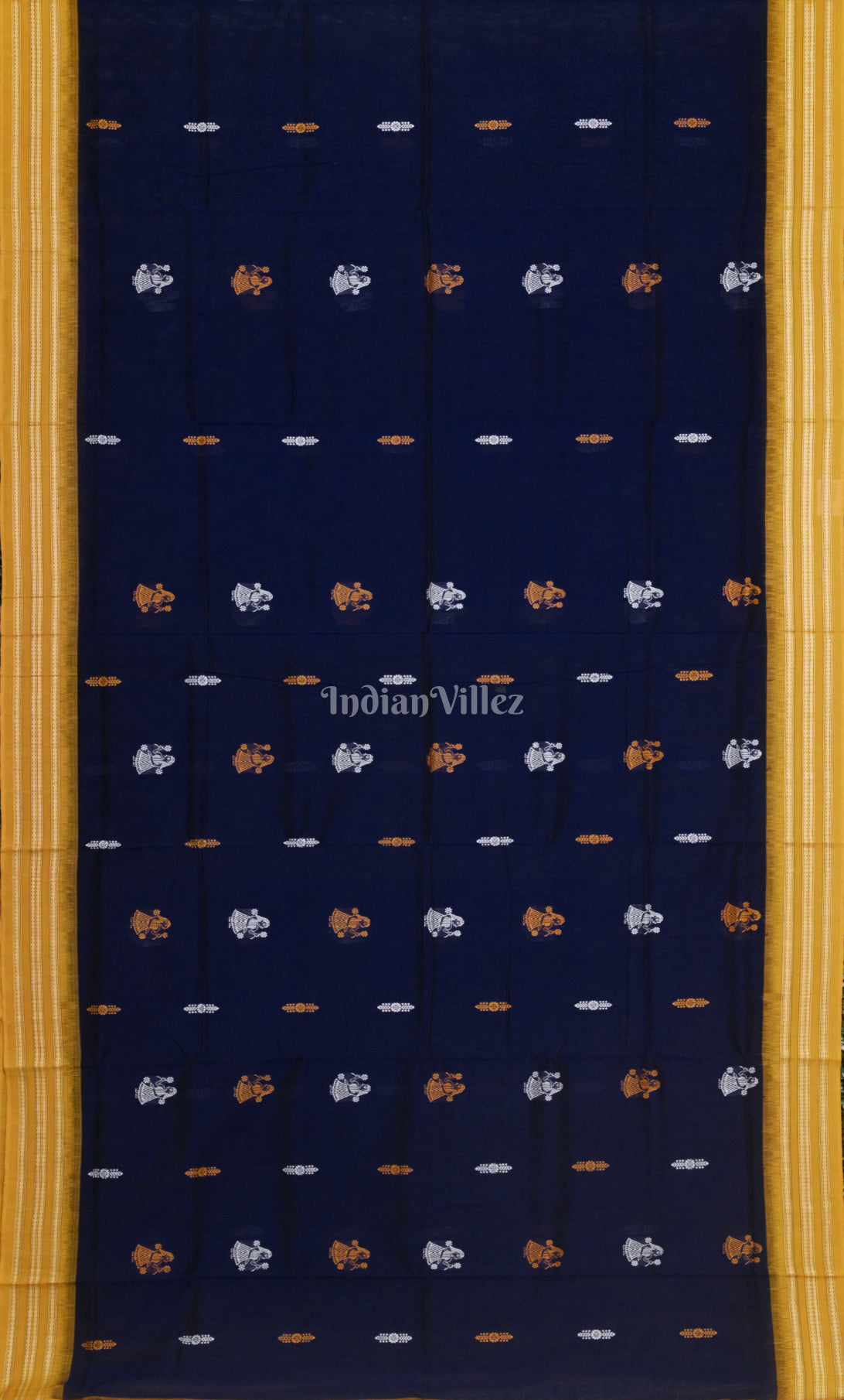 Blue Yellow Doll Theme Odisha Ikat Bomkai Cotton Saree