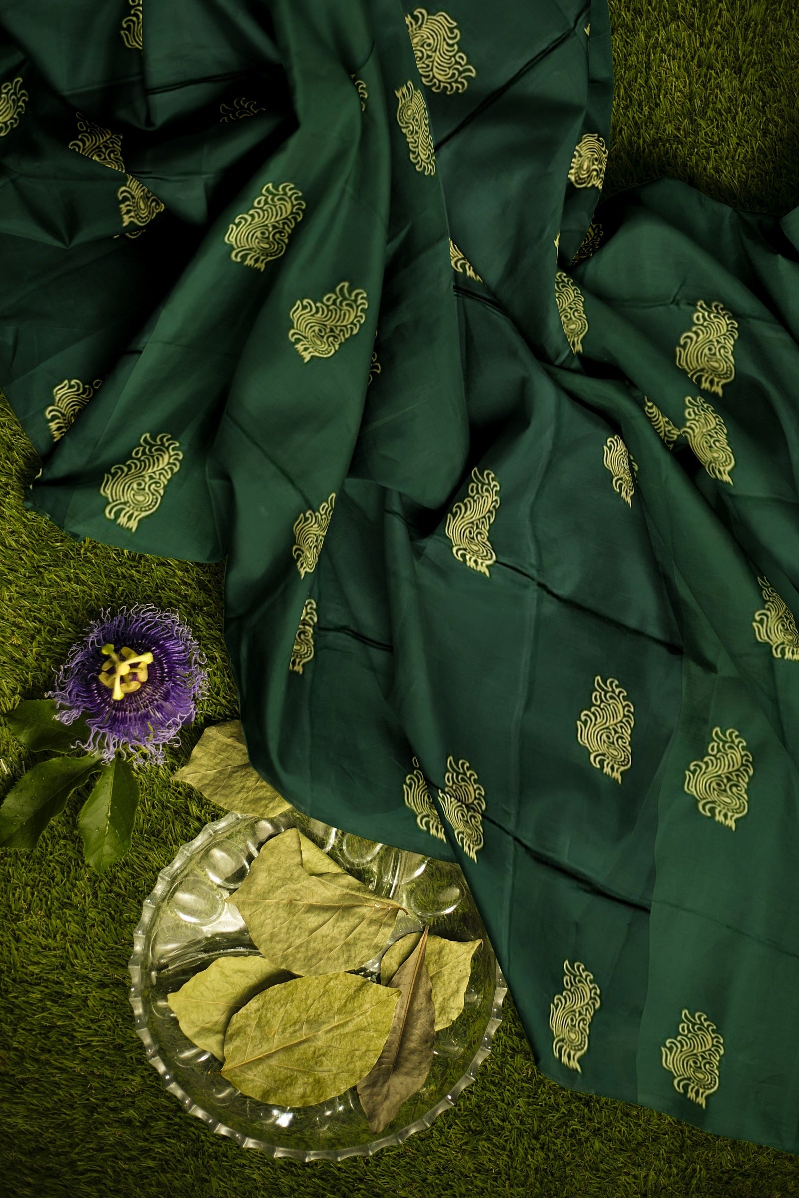 Bottle Green With Mustard Yellow Kanjivaram Soft Silk Saree