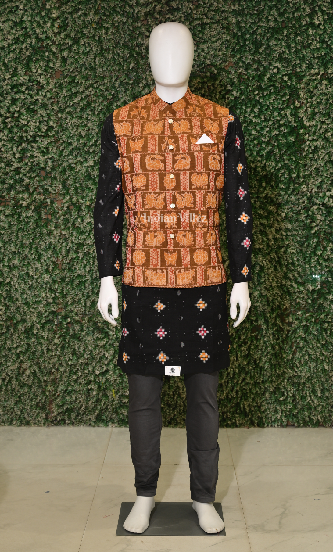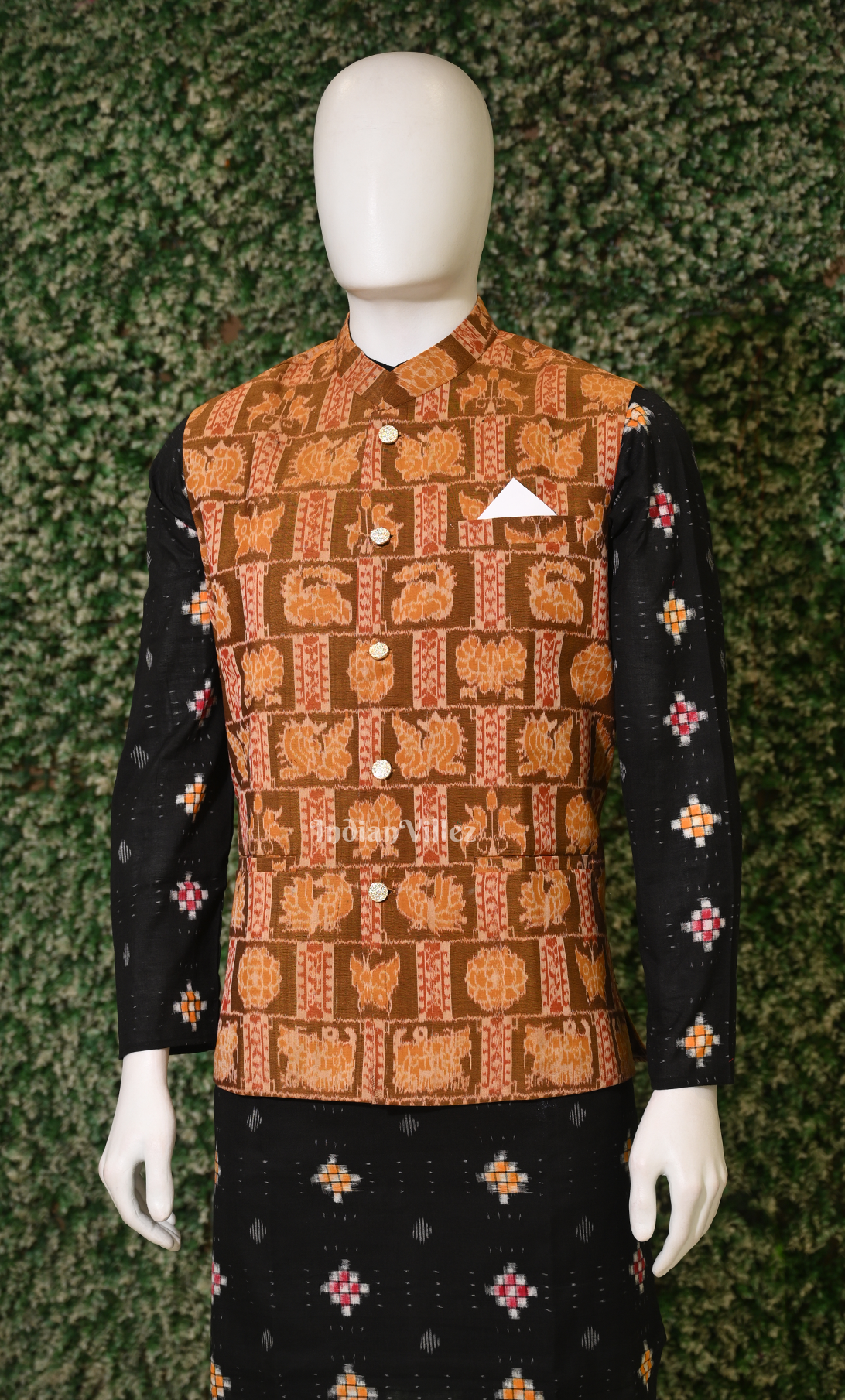 Brown Odisha Ikat Half Bandi Jacket for Men