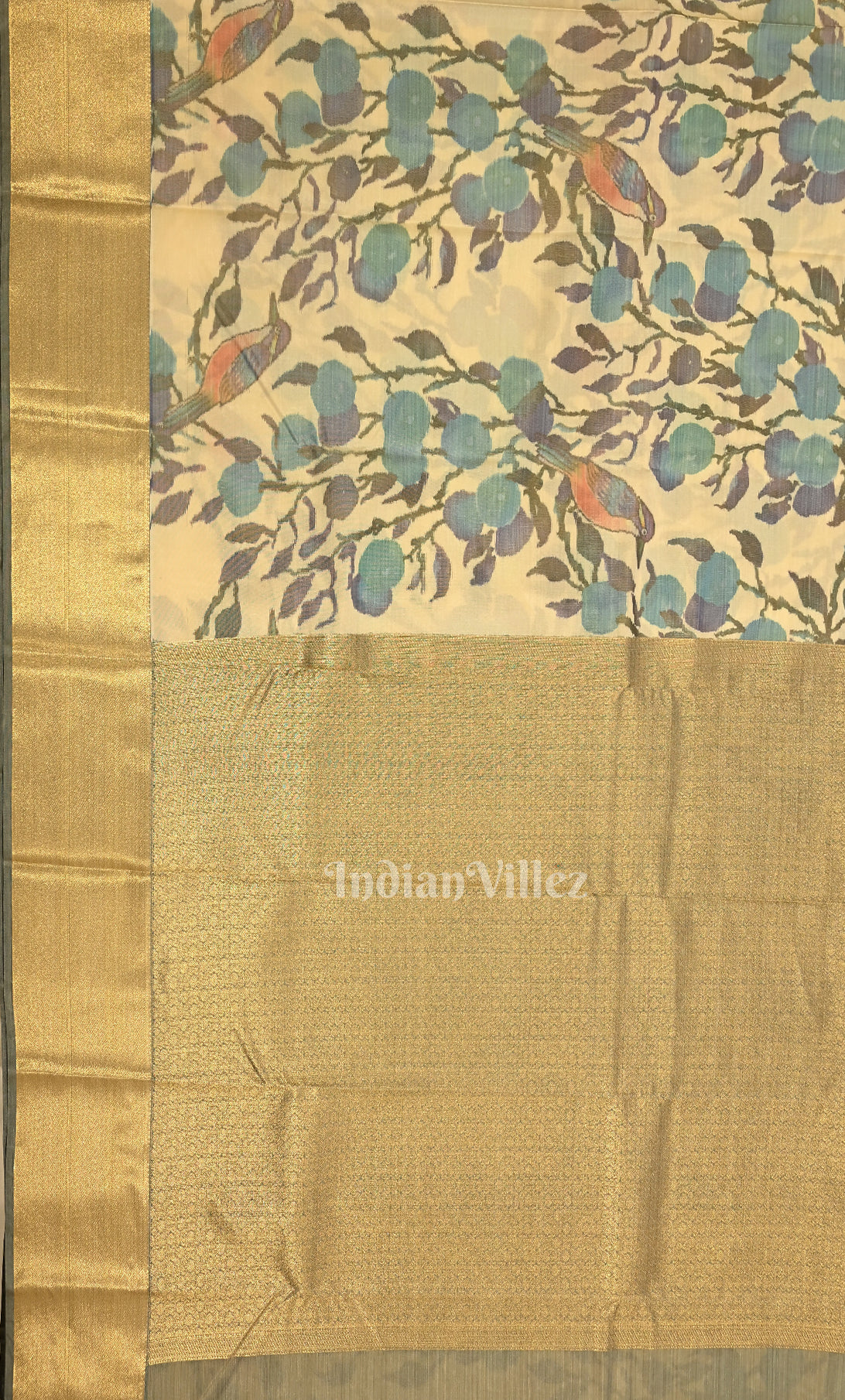 Cream Floral Digital Print Kanjivaram Silk Saree
