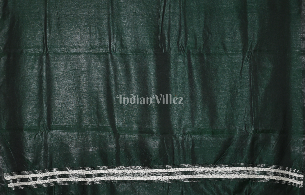 Dark Green Handwoven Kantha Stitch Silk Saree