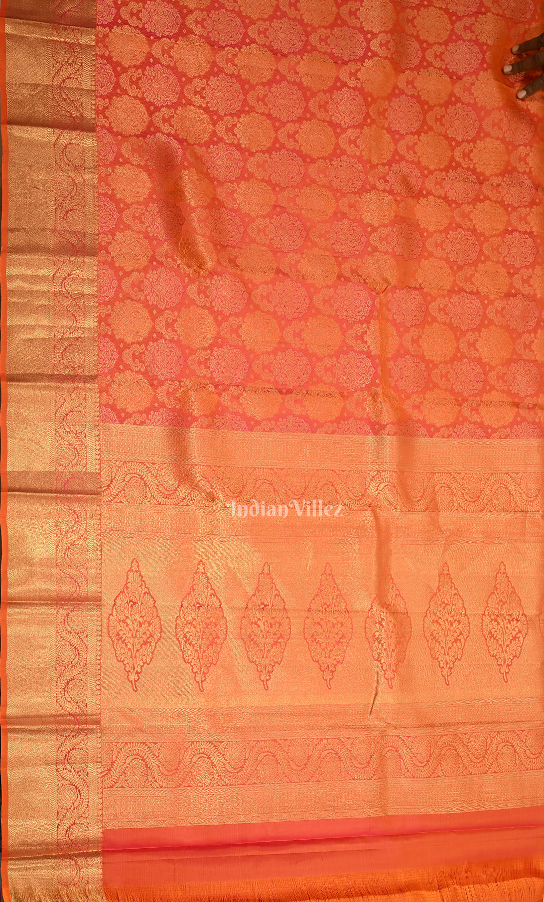 Elegant Red Brocade Pure Kanjivaram Silk Saree with Gold Border
