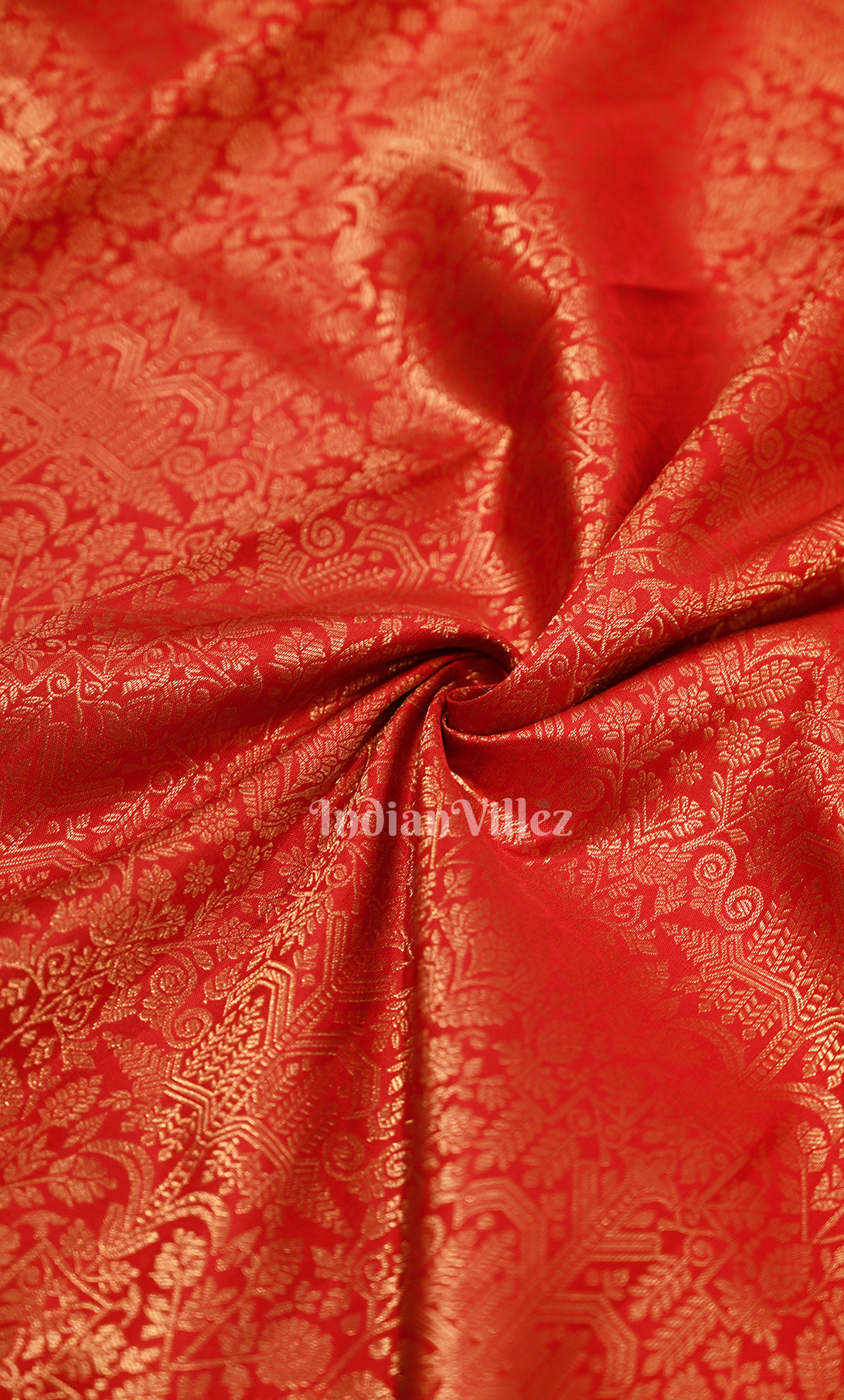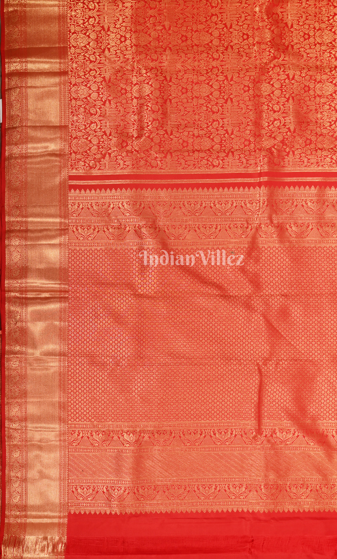 Exclusive Blood Red Floral Vine Motifs Brocade Pure Kanjivaram Silk Saree