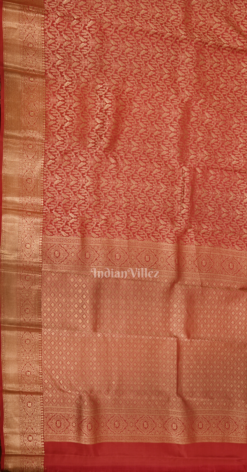 Exclusive Bridal Red Brocade Pure Kanjivaram Silk Saree with Flower Bird Pattern