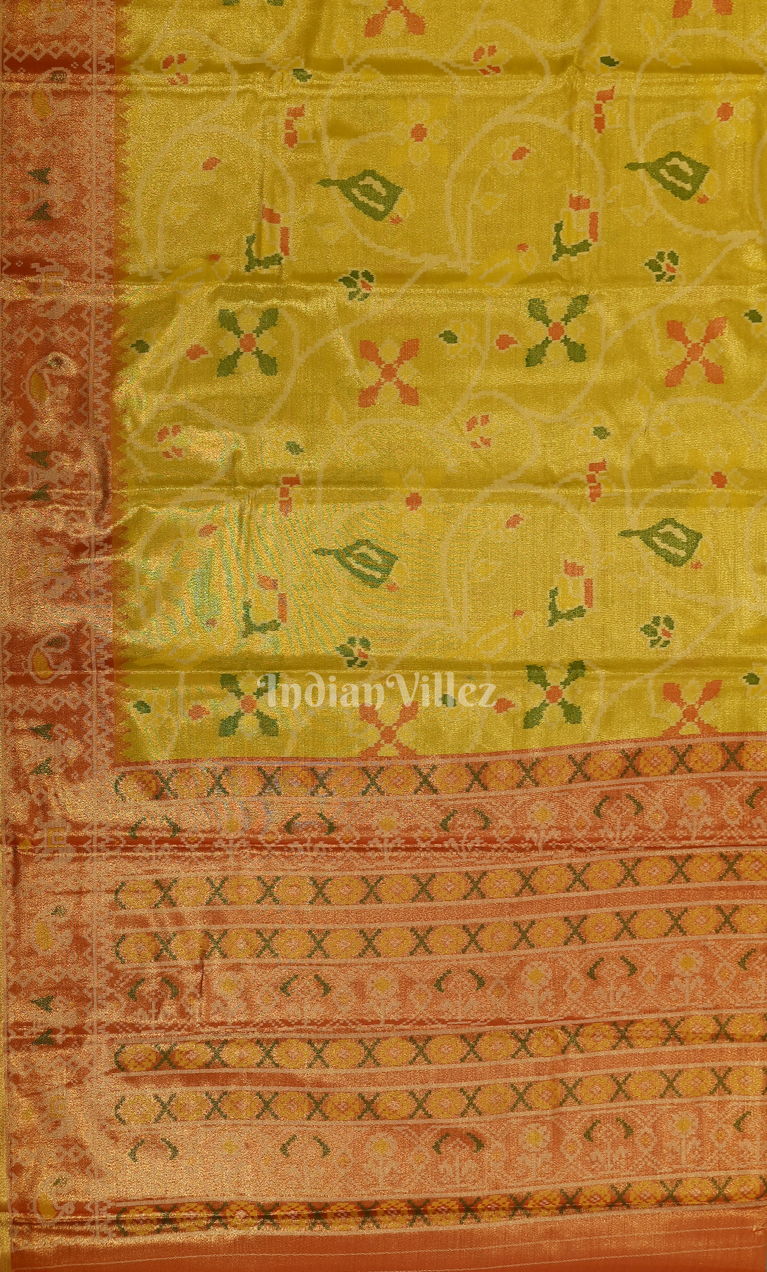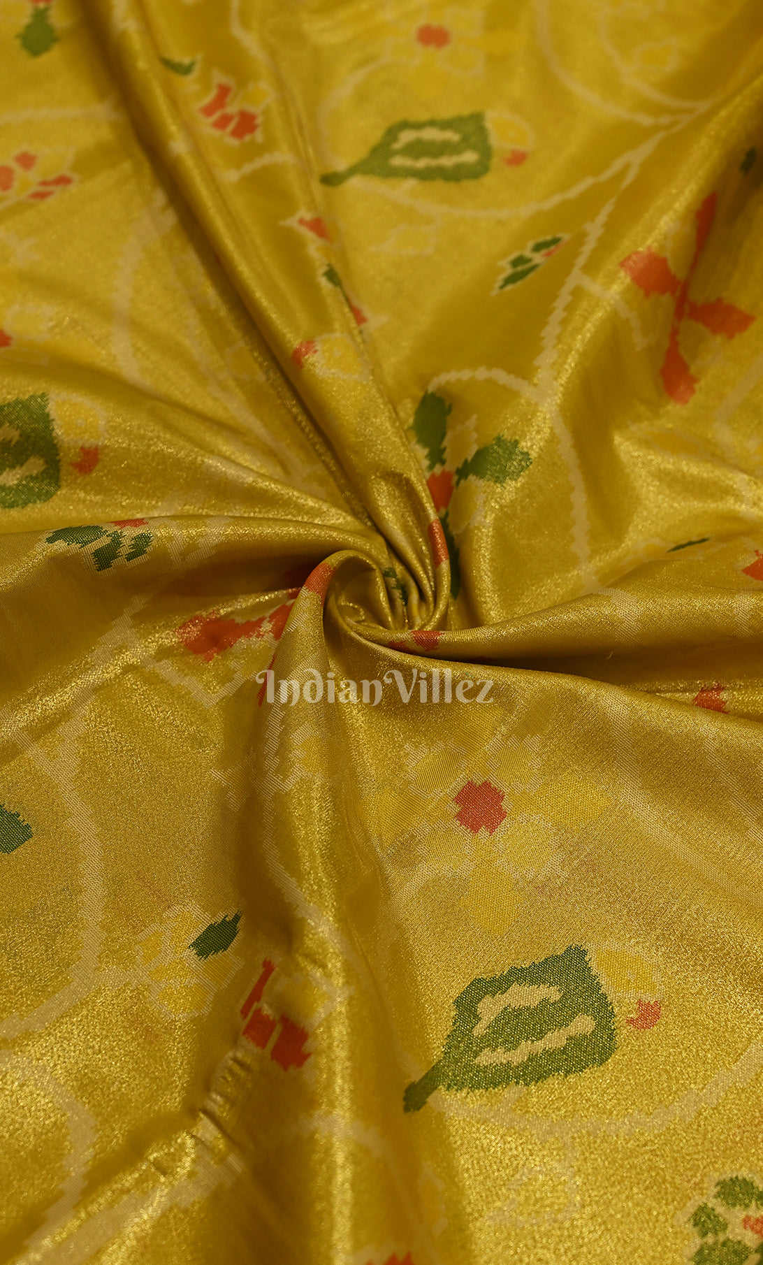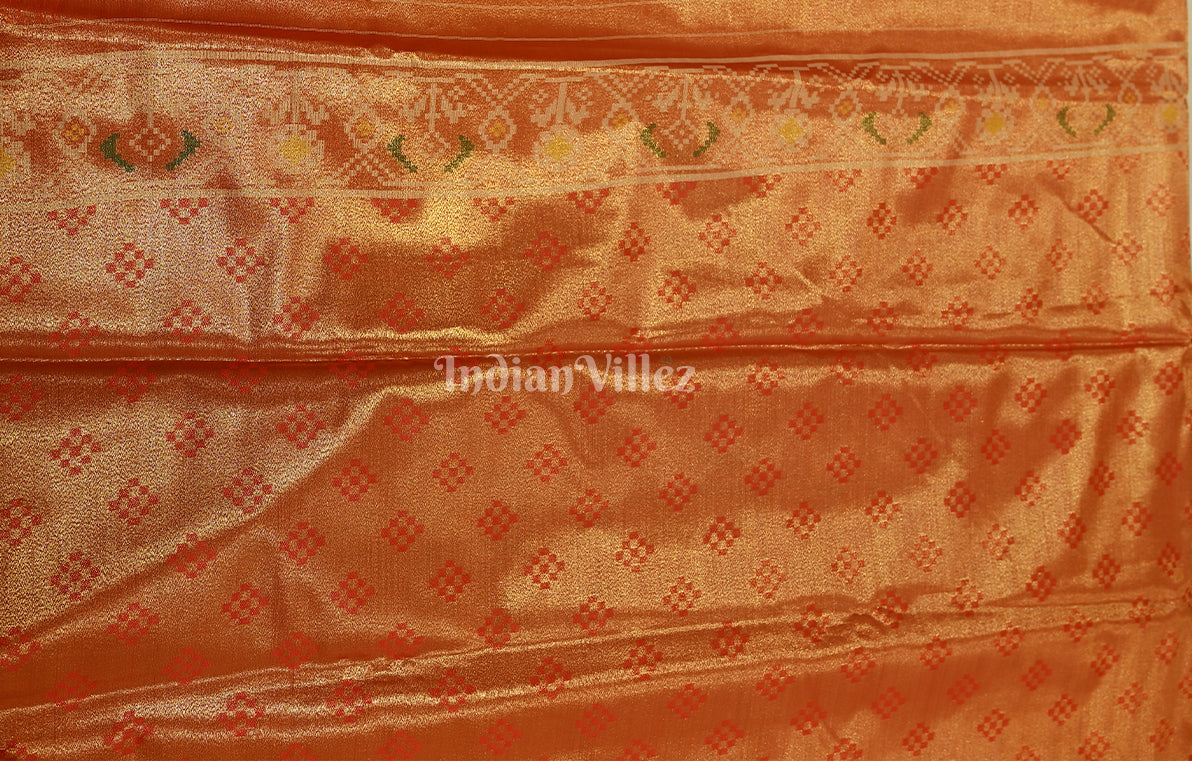 Golden yellow Orange Dual Tone Digital Print Kanjivaram Silk Saree