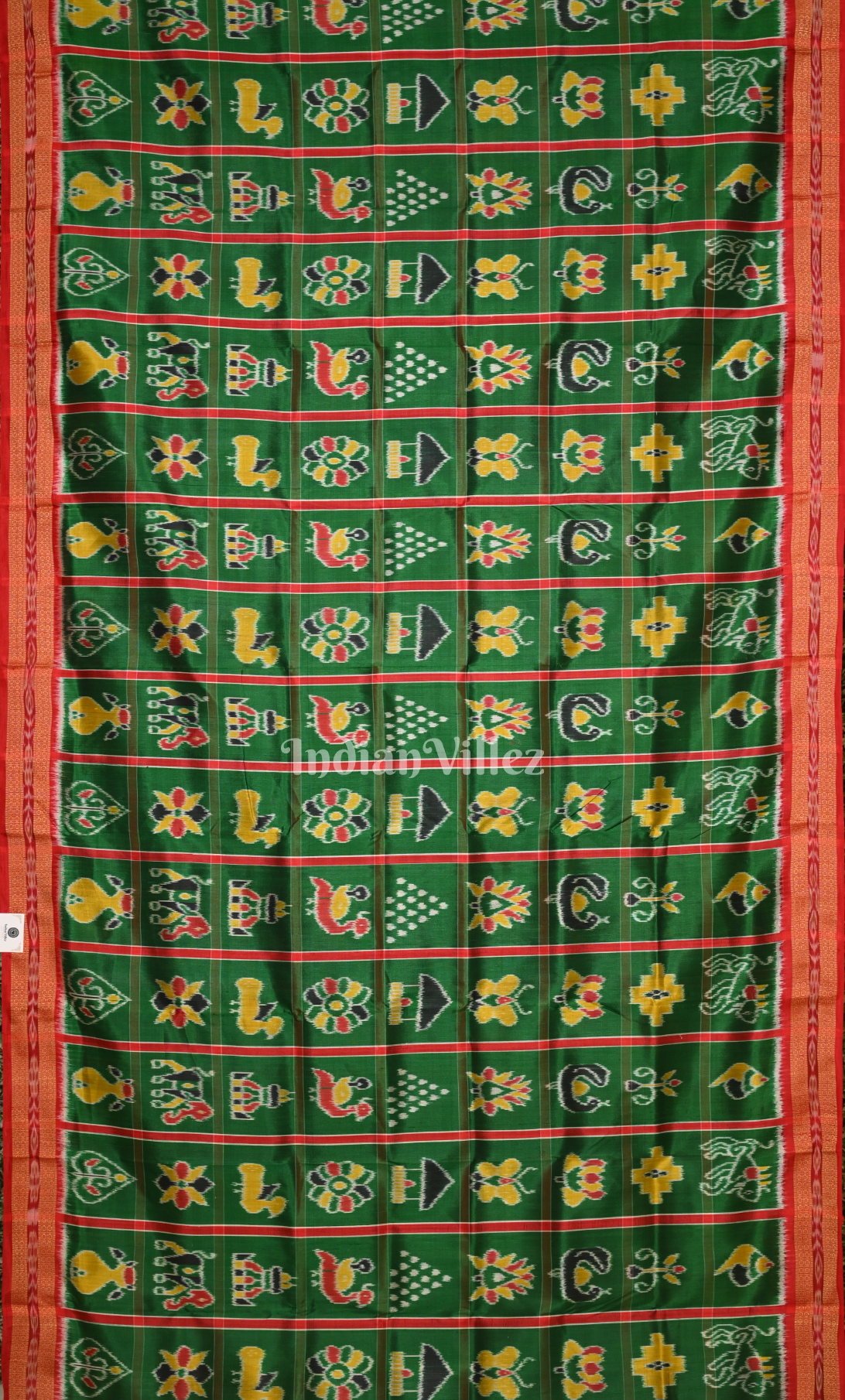 Green Red Nabakothi Odisha Ikat Khandua Silk Saree