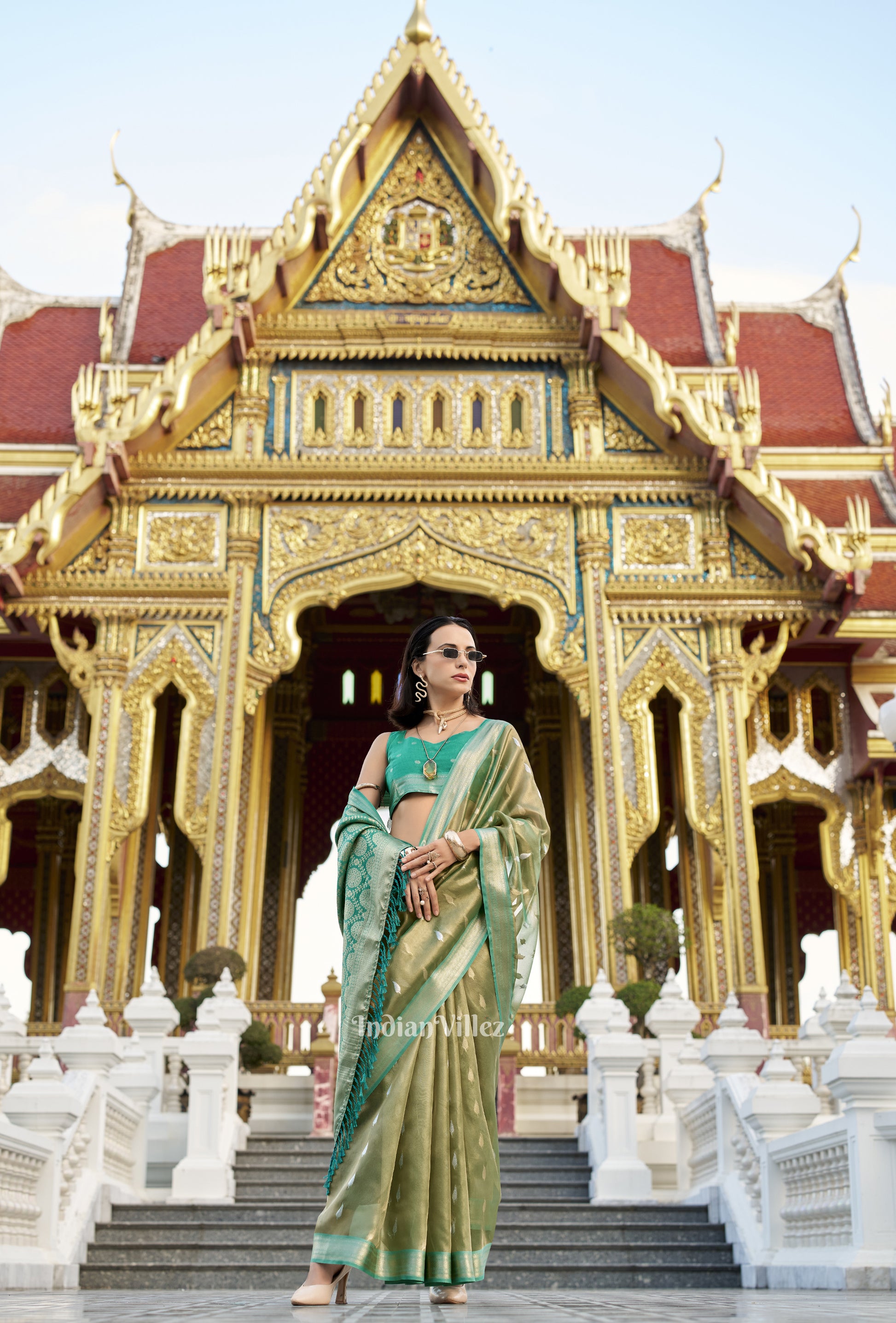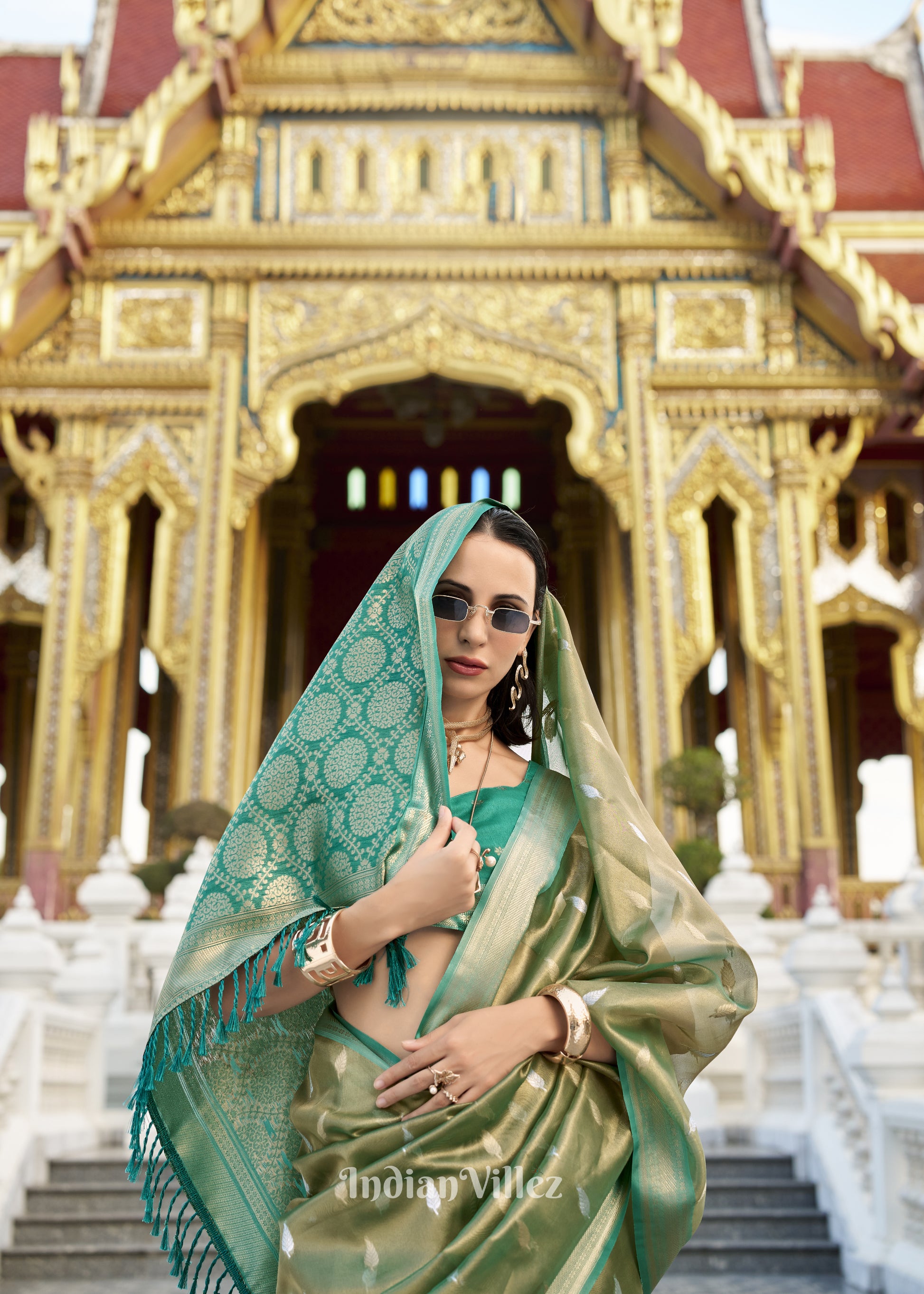 Green Zari Tissue Silk Saree