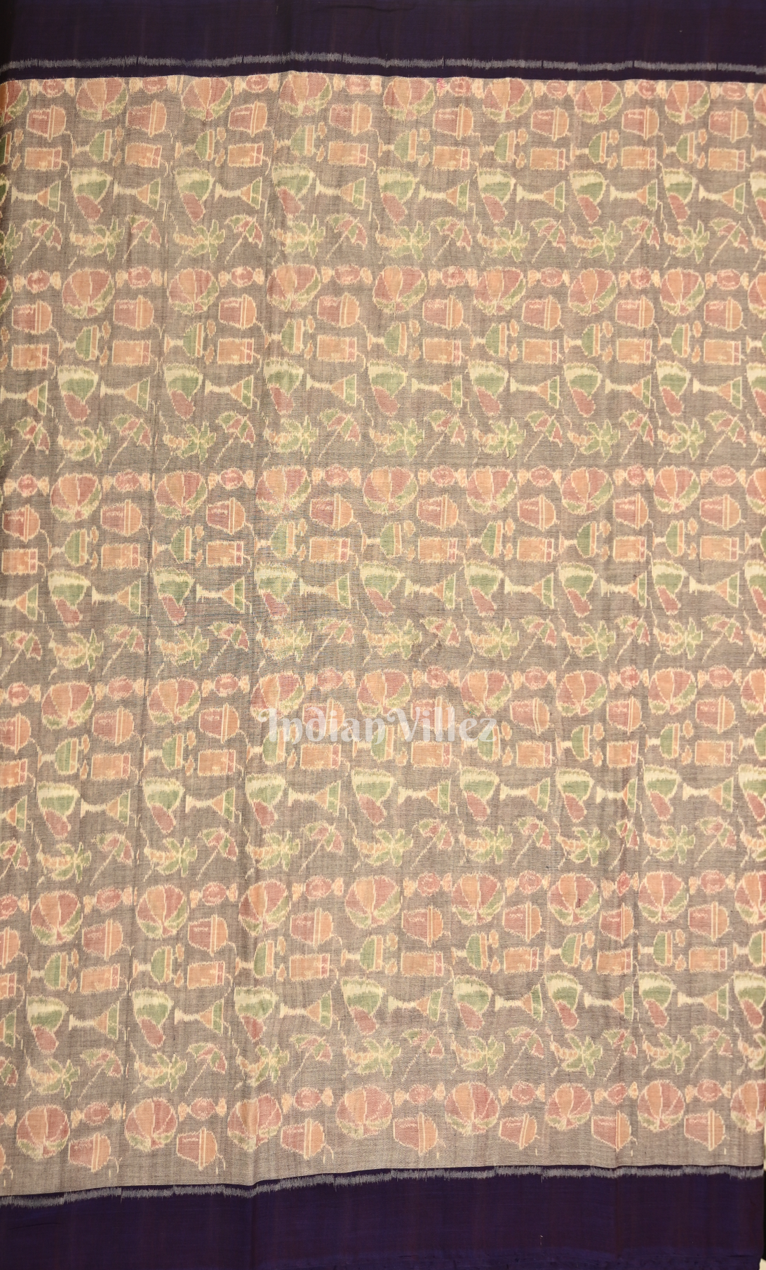 Grey Purple Odisha Ikat Sambalpuri Cotton Fabric