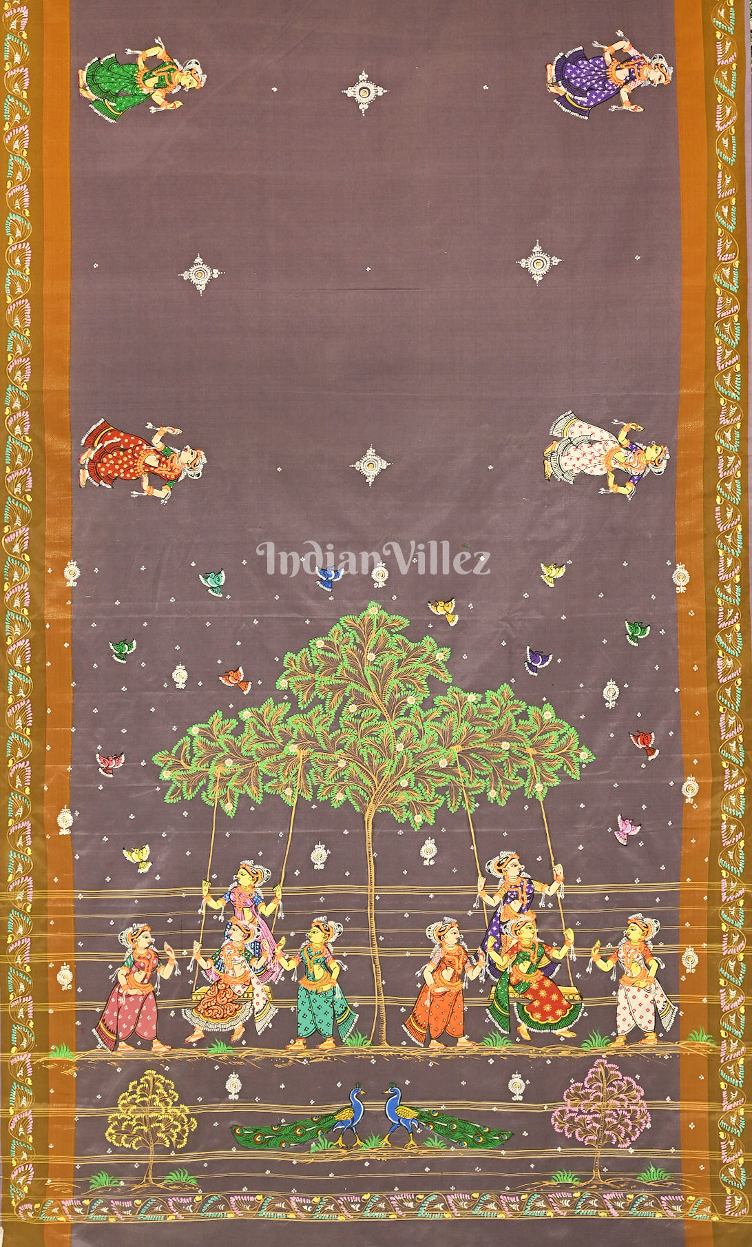 Grey Raja Doli Theme Hand-Painted Pattachitra Saree