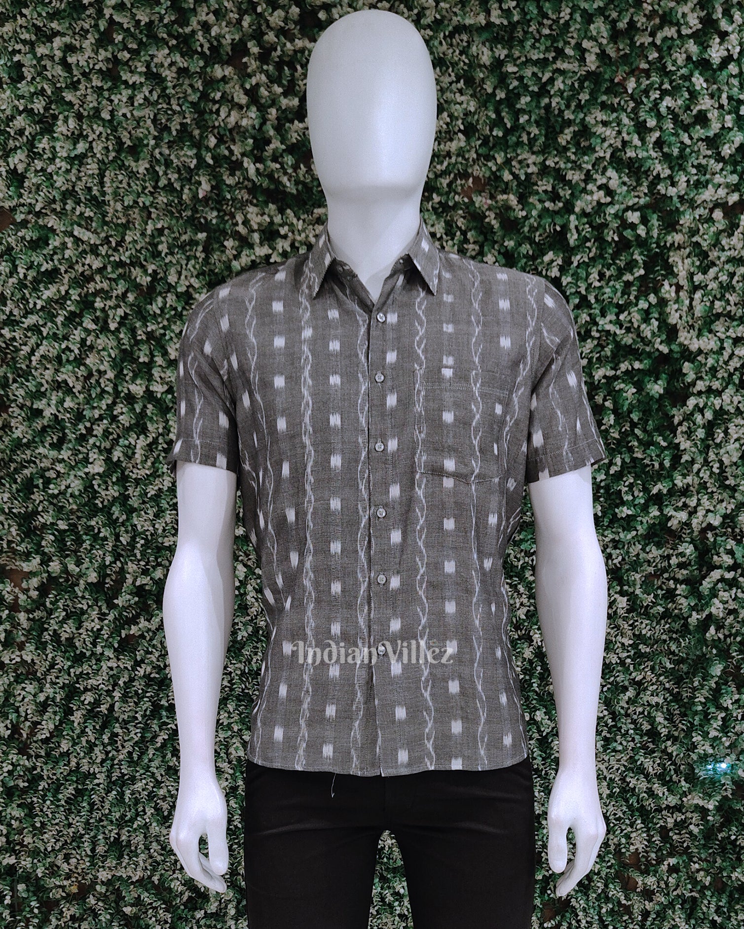 Grey Tipa Design Odisha Ikat Cotton Half Sleeve Shirt for Men