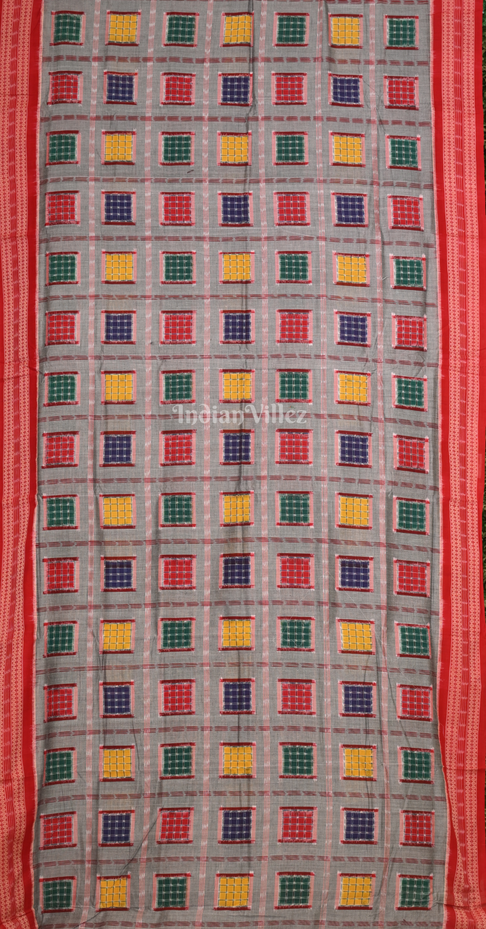 Grey with Multi Colour Ashwini Sambalpuri Ikat Cotton Saree