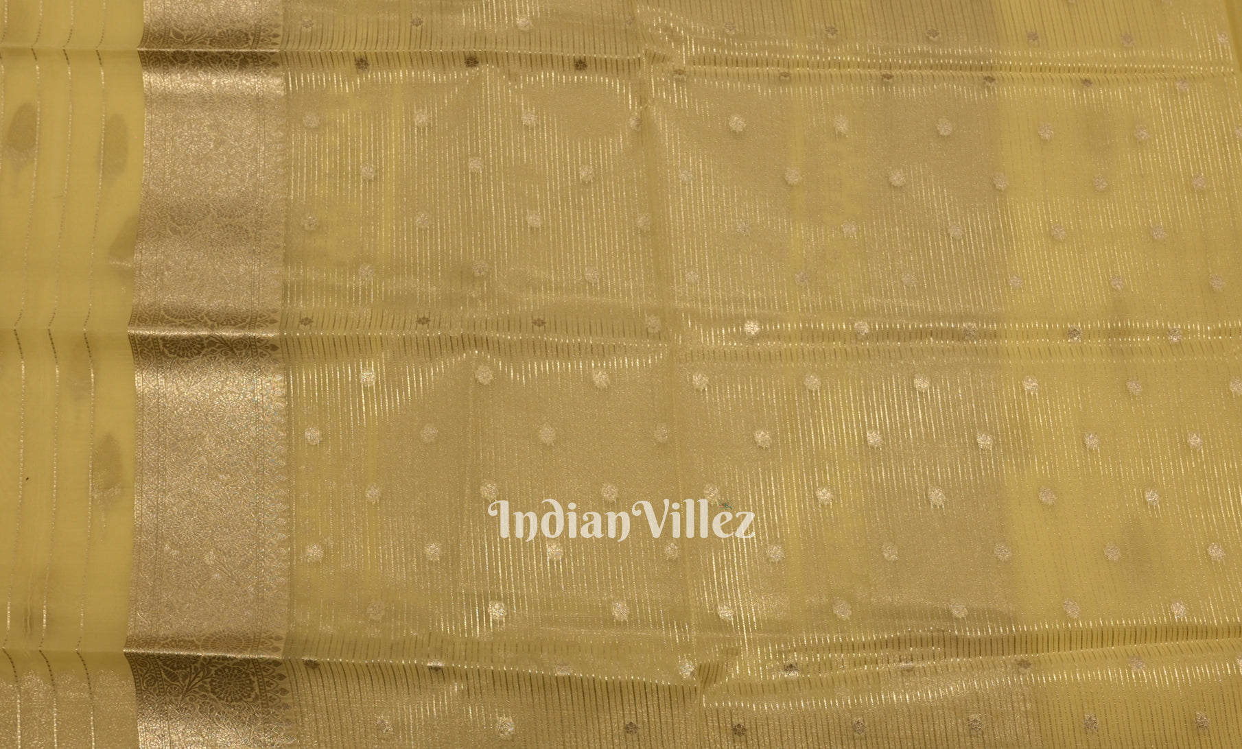 Light Yellow Leaf Motif Chanderi Silk Banarasi Saree