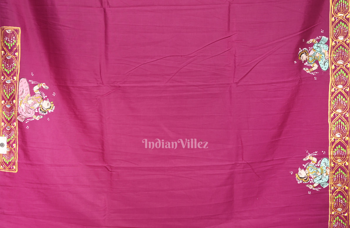 Maroon Ardha Chandra Krishna Rasa Leela Hand-Painted Pattachitra Saree