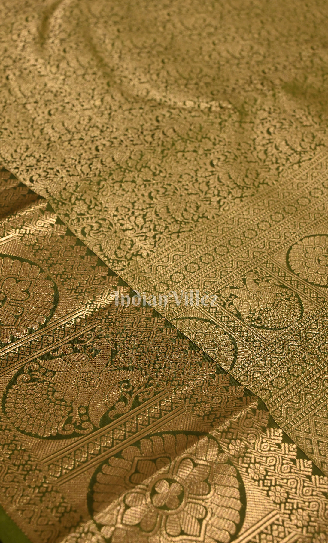 Mehendi Green pure Kanjivaram Silk Saree with Zari Brocade