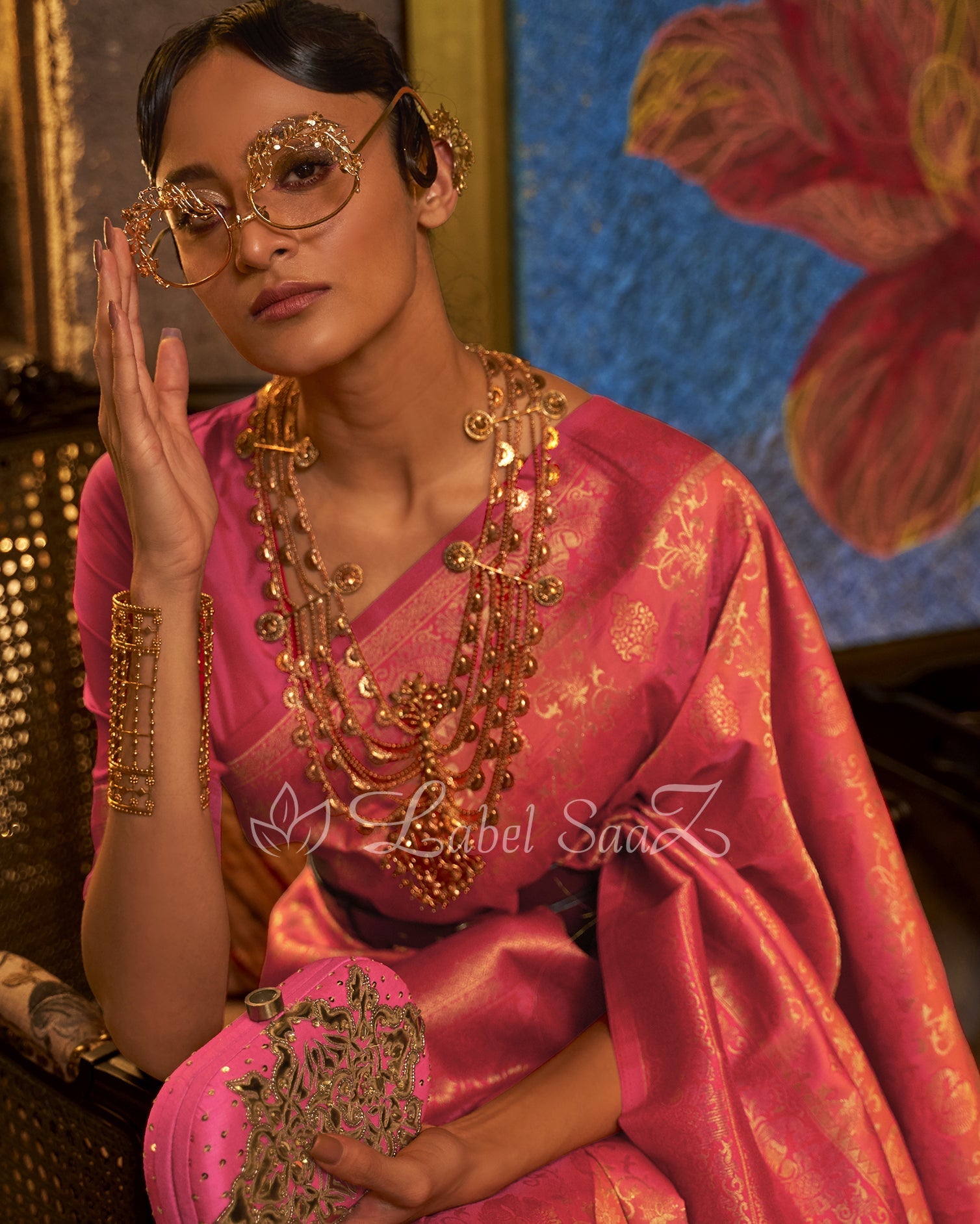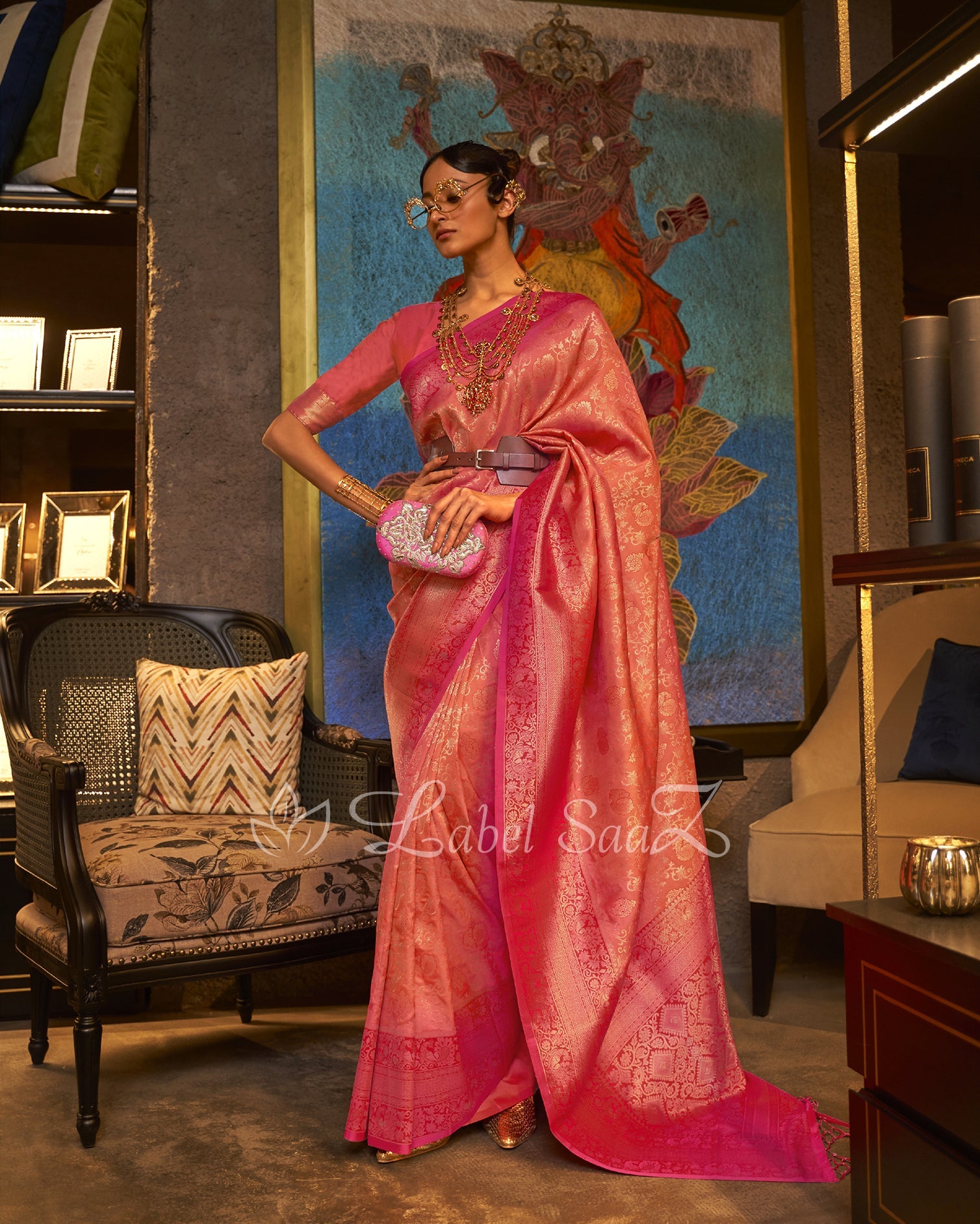 Orange Pure Chaap Handloom Weaving Silk Saree