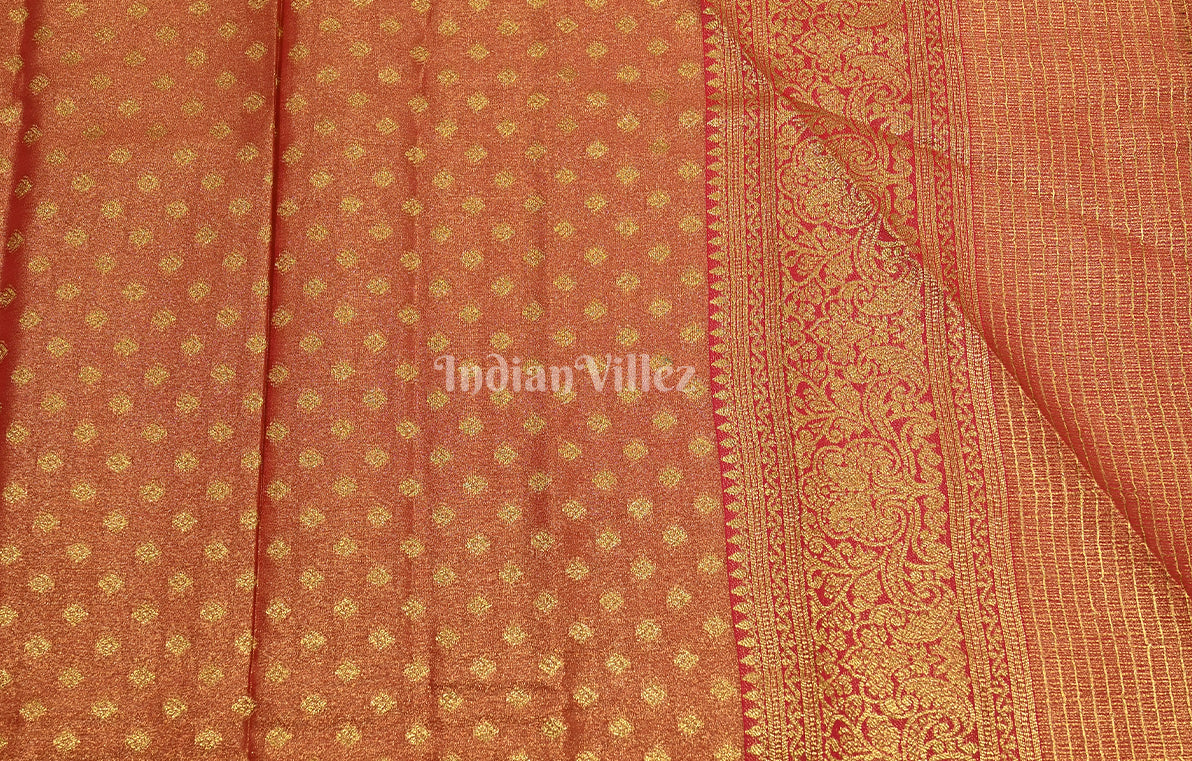 Orange Red Brocade Pure Kanjivaram Silk Saree