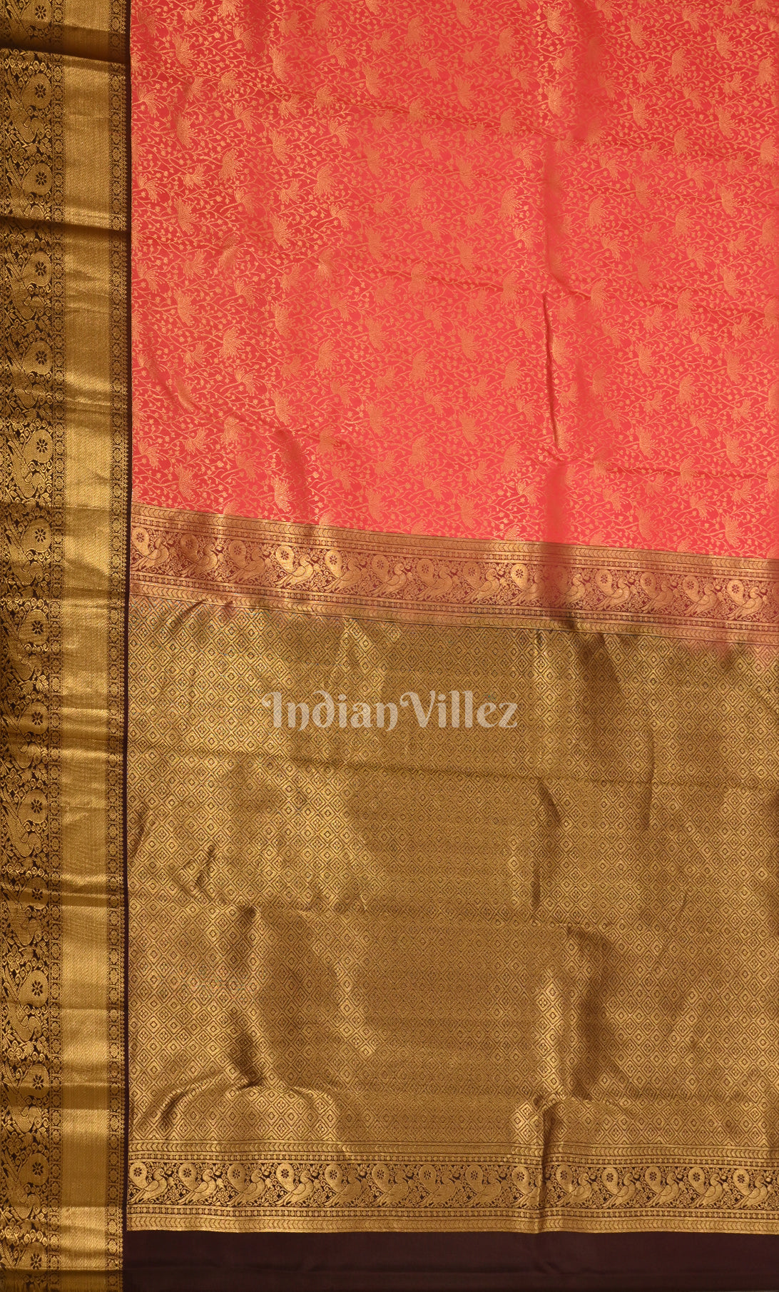 Peach Pink Coffee pure Kanjivaram Silk Saree with Zari Brocade