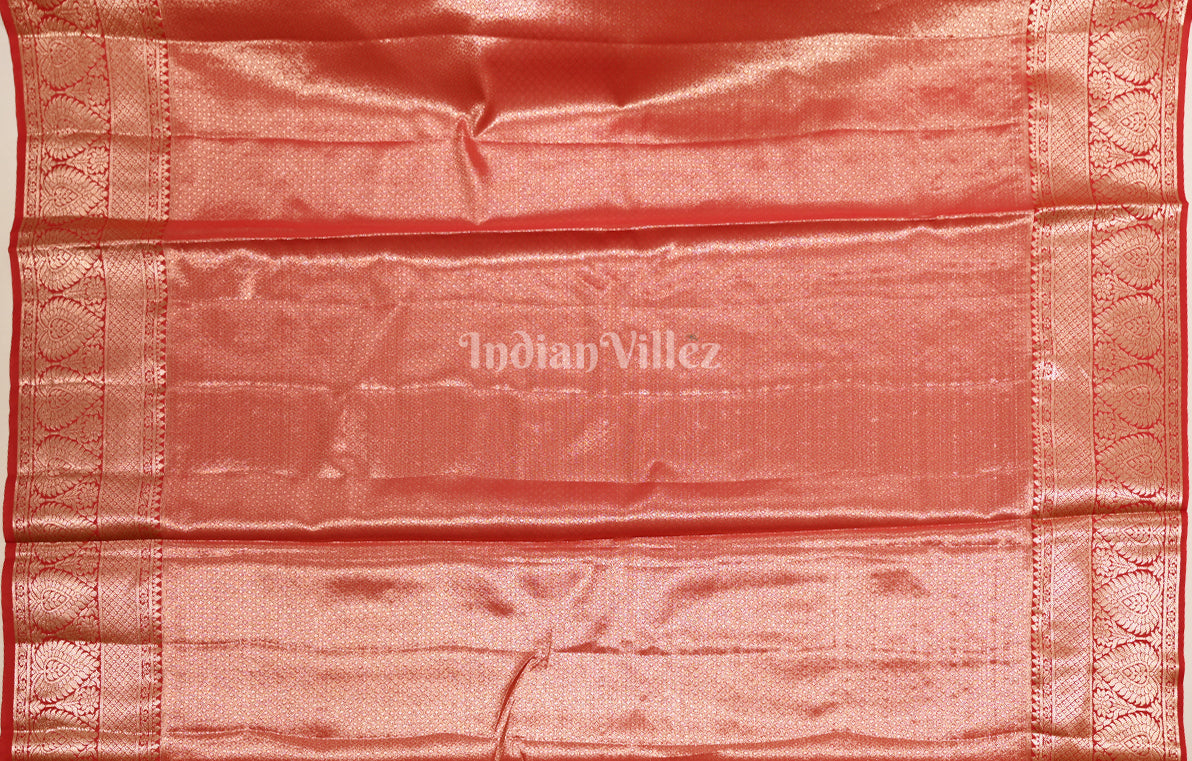 Peach Red Brocade Pure Kanjivaram Tissue Silk Saree