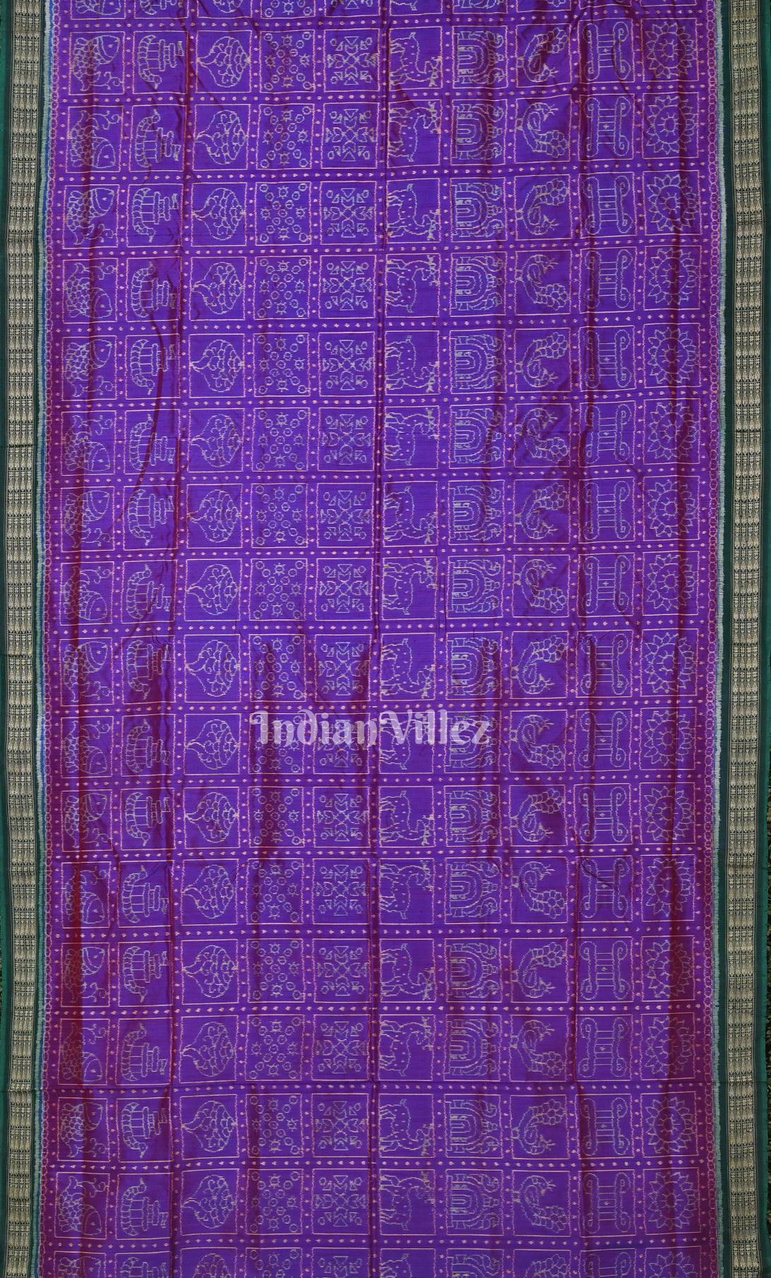 purple Blue Tree Motif Odisha Ikat Sambalpuri Silk Saree