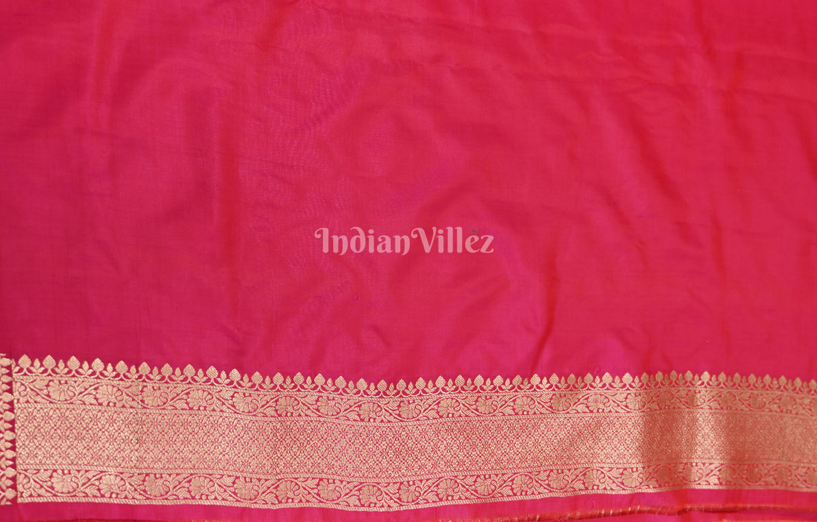 Rani Pink Pure Katan Banarasi Silk Saree with Golden Floral Jaal Work