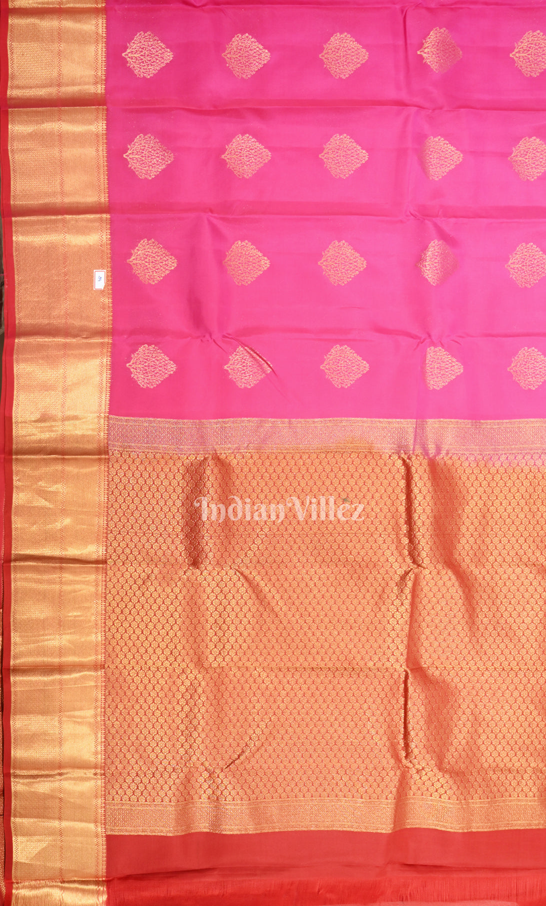Rani Pink Red Zari woven Pure Kanjivaram Silk Saree