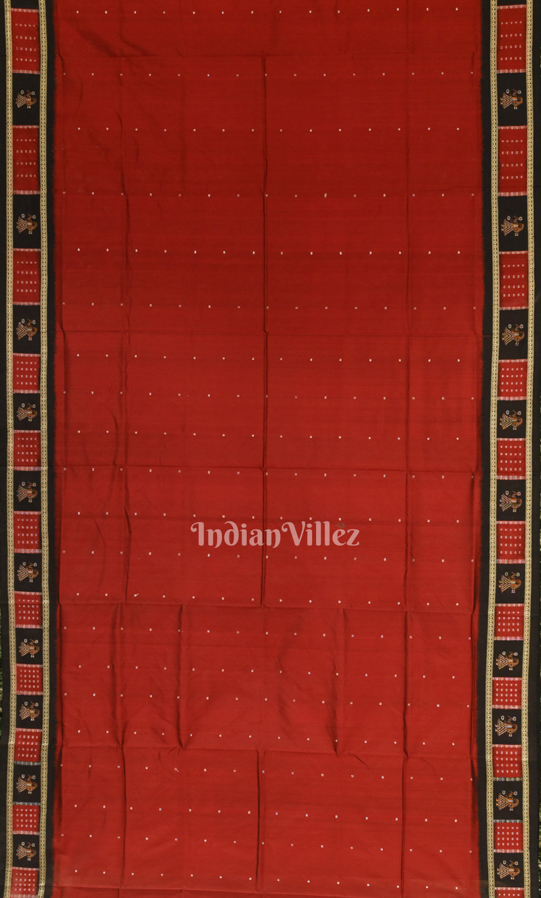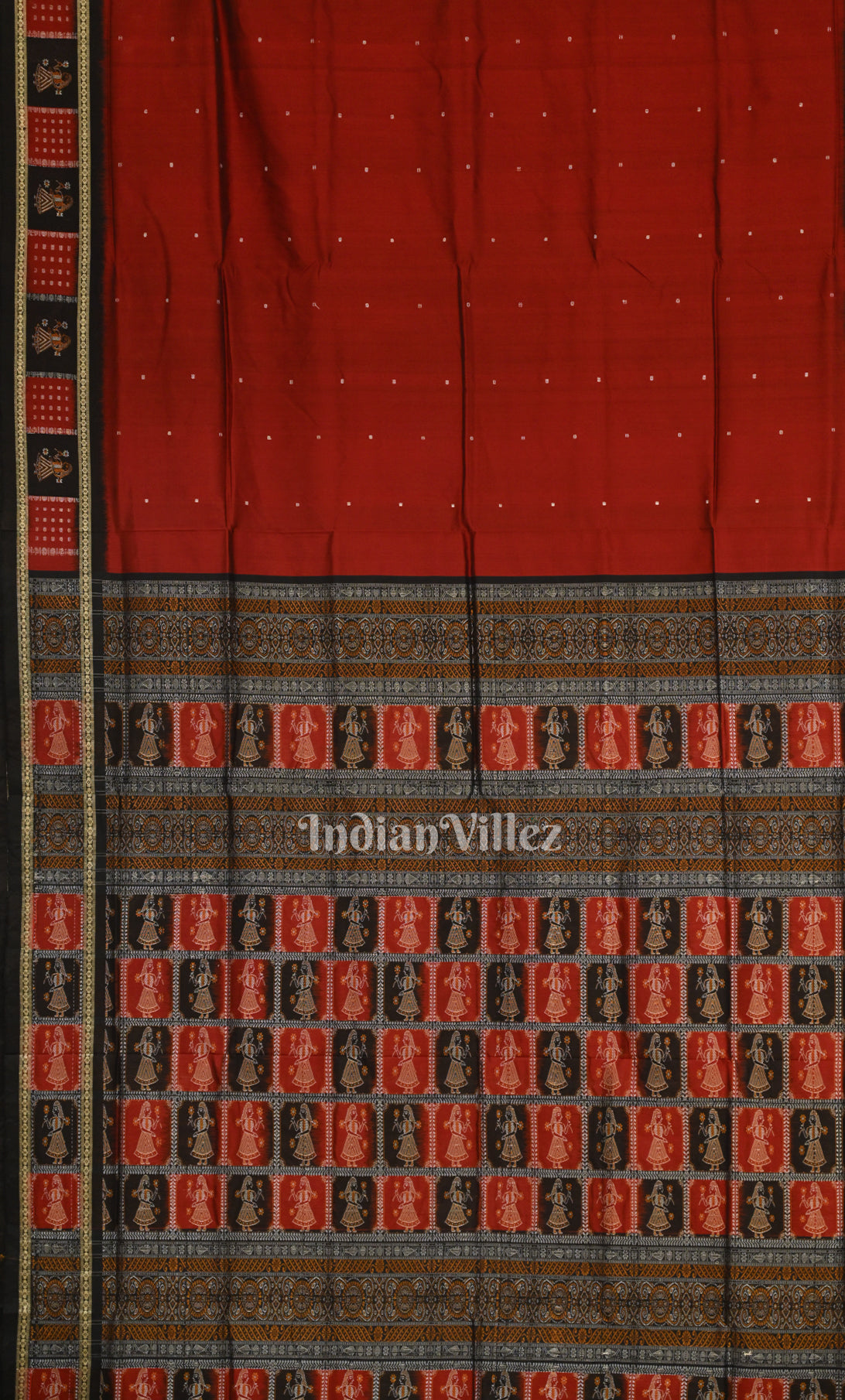 Red Black Buti Design Odisha Ikat Bomkai Sambalpuri Silk Saree with Doll Aanchal