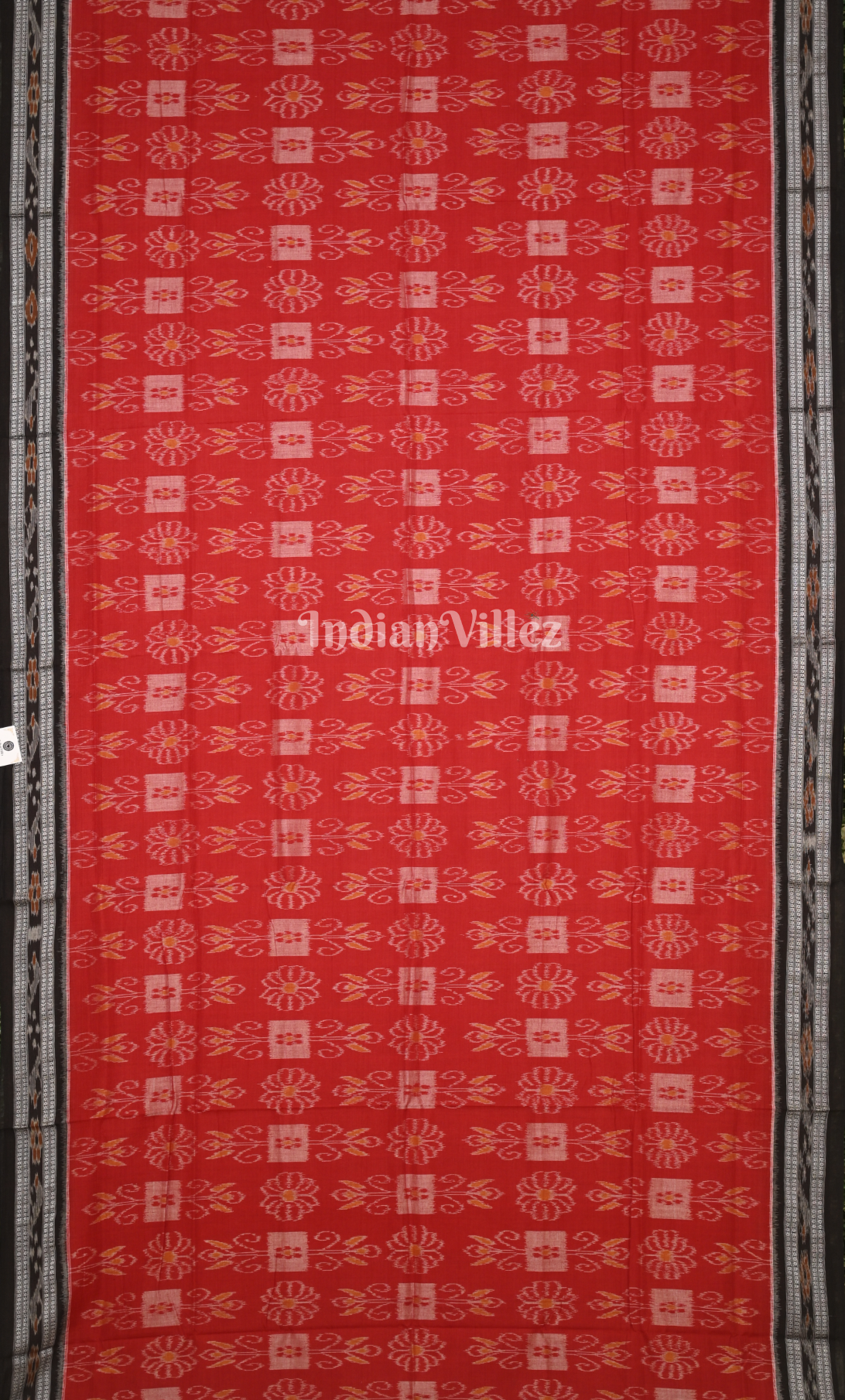 Red Black Tree motif Odisha Ikat Sambalpuri Cotton Saree