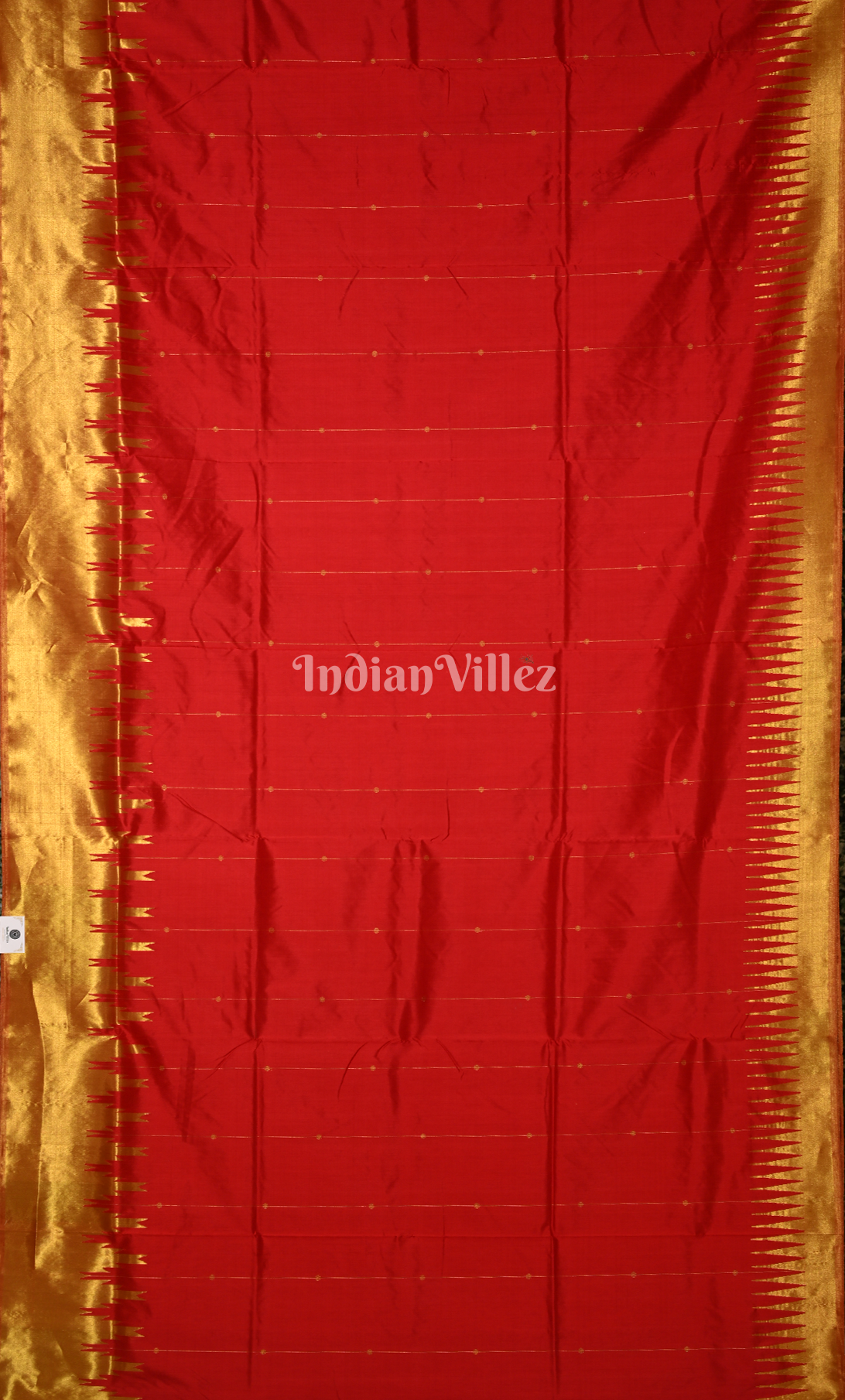 Red Golden Phoda Kumbha Half Tissue Sambalpuri Silk Saree