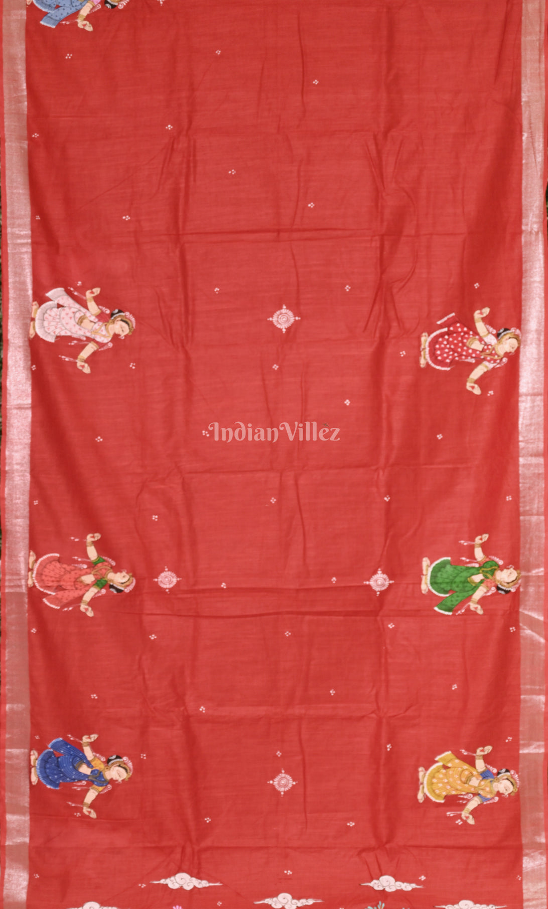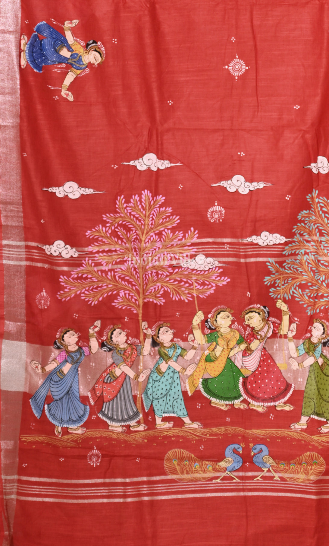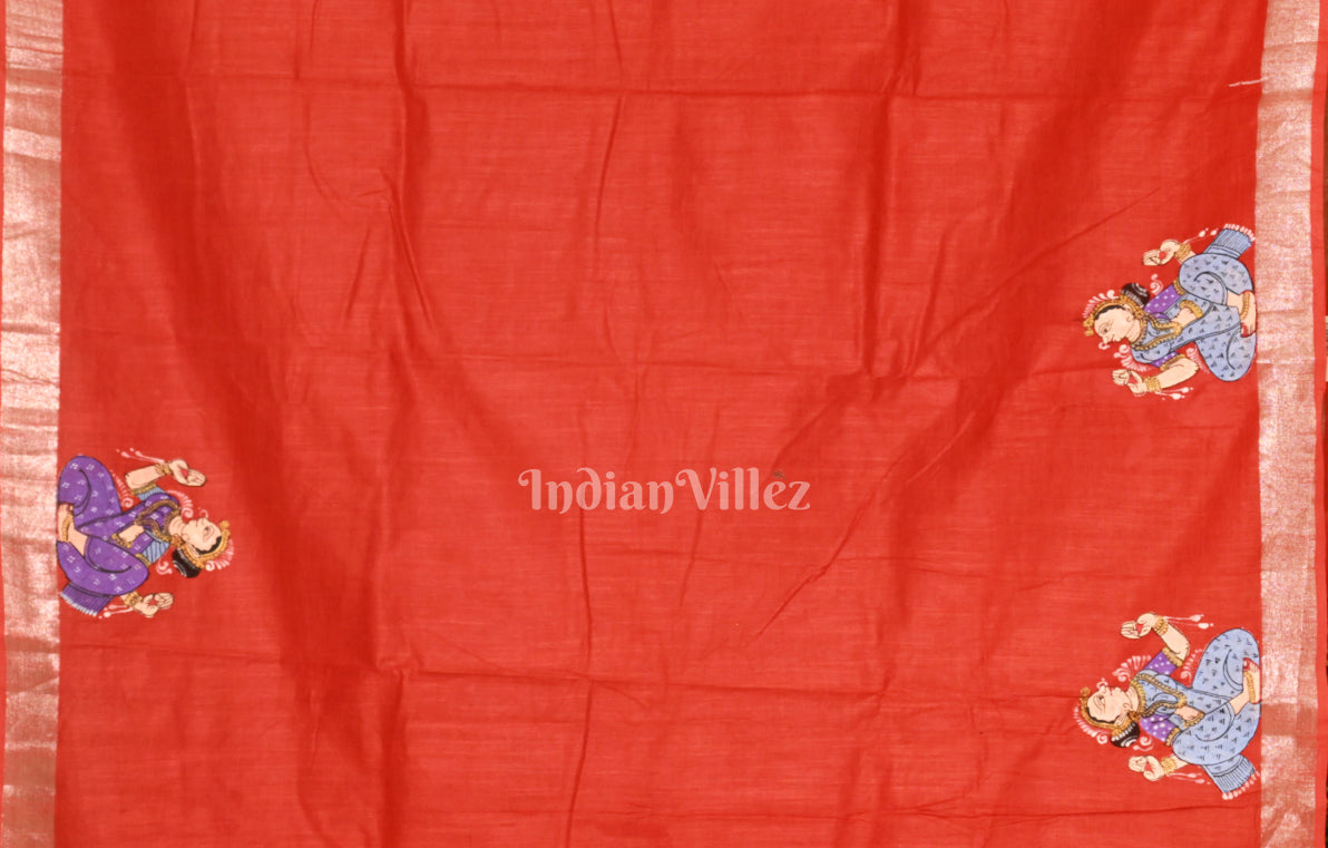 Red Raja Doli Theme Hand-Painted Pattachitra Saree