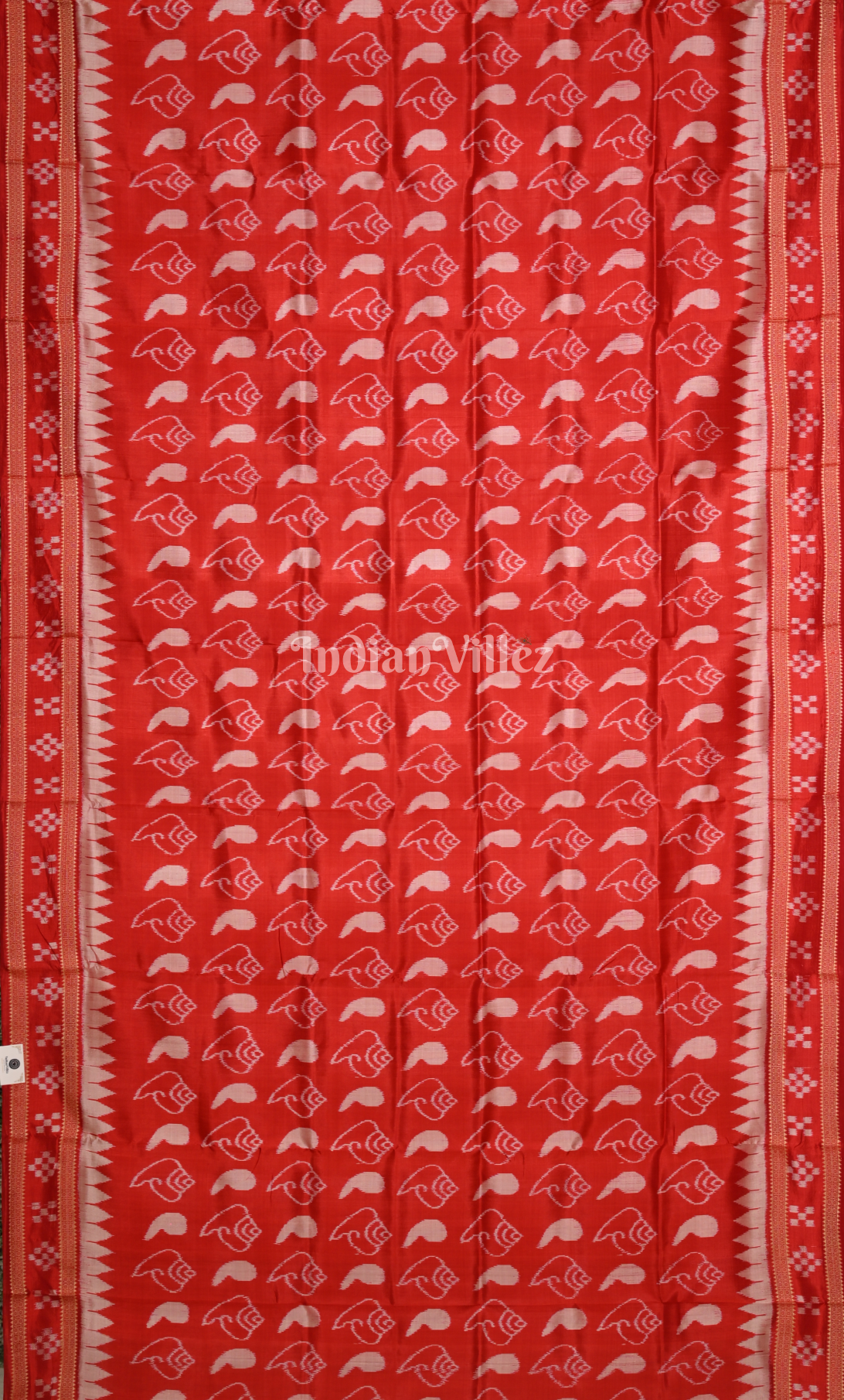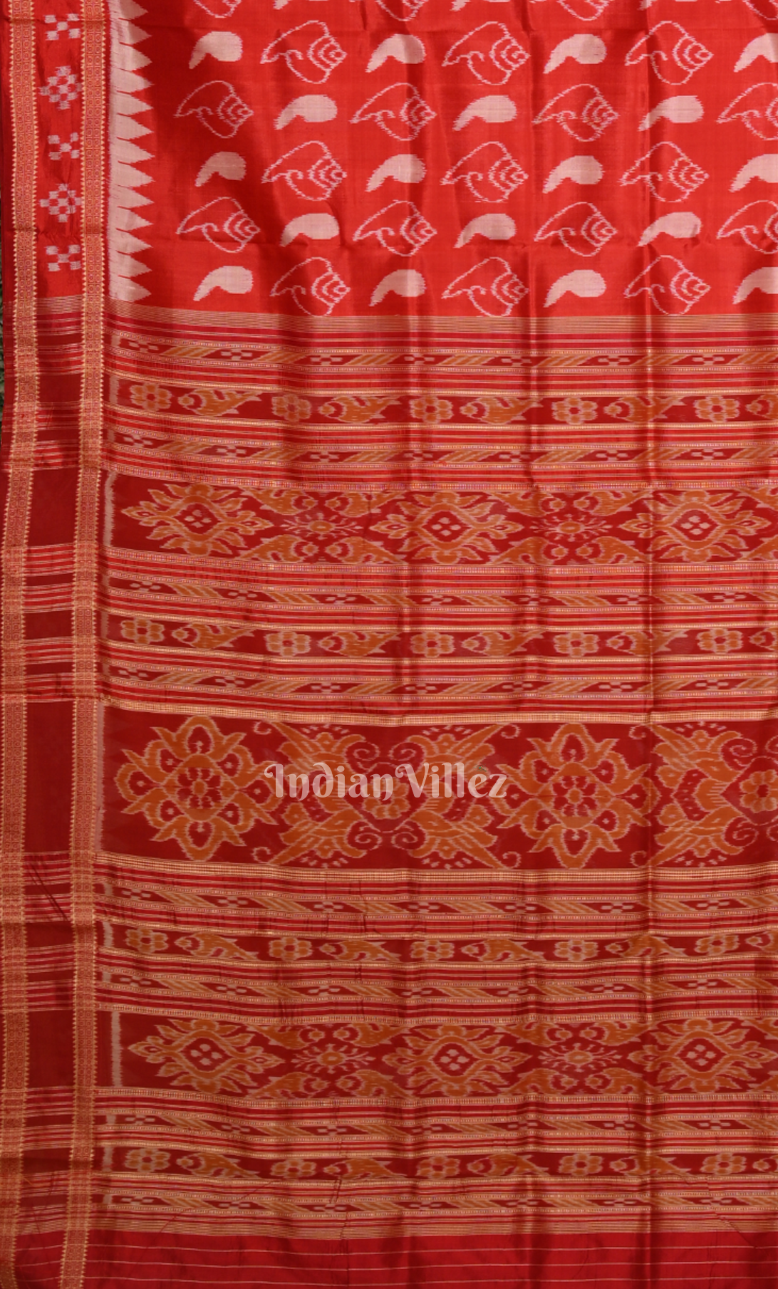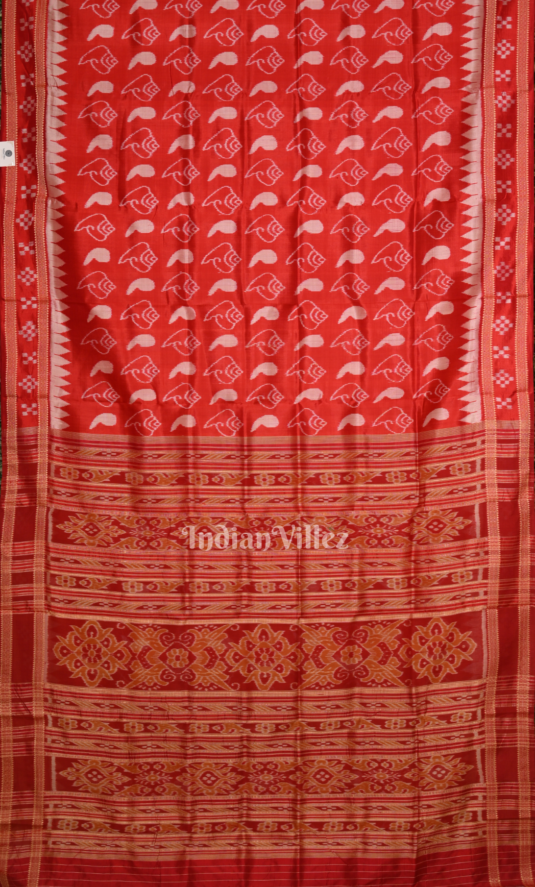 Red Sankha Design Odisha Ikat Khandua Silk Saree with Pasapali Border