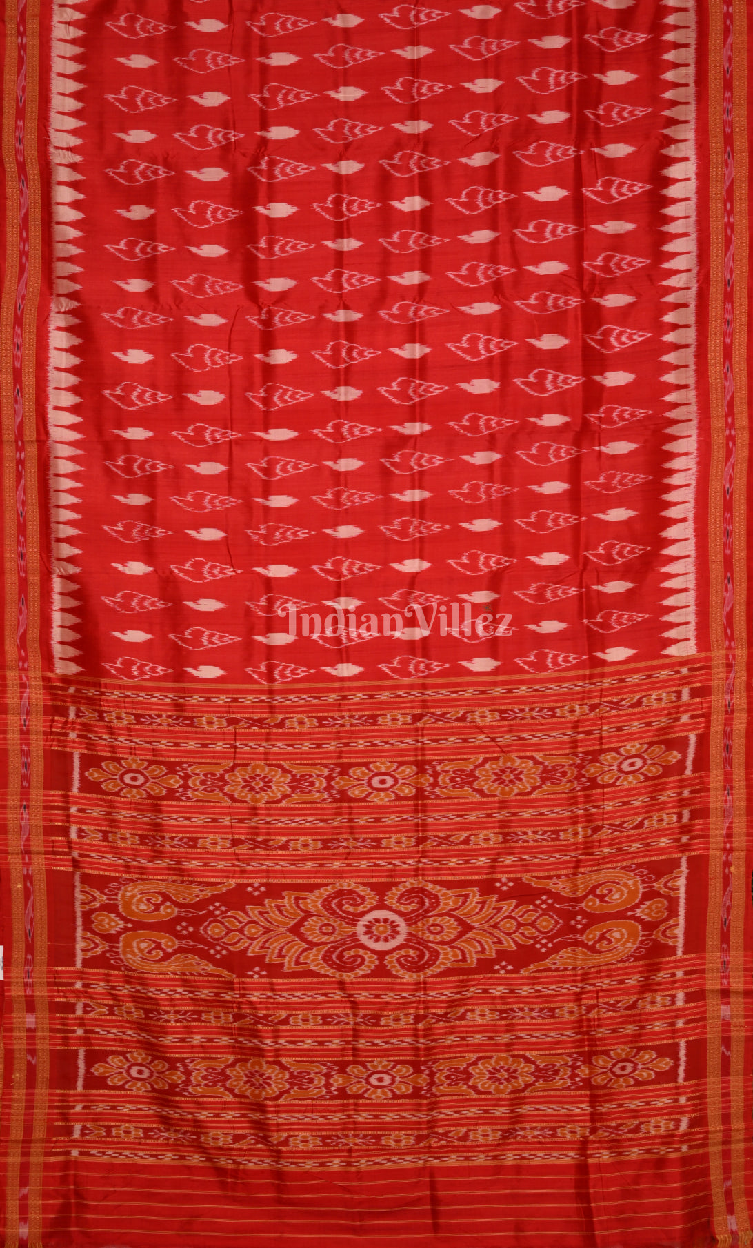 Red Sankha Motif Odisha Ikat Khandua Silk Saree
