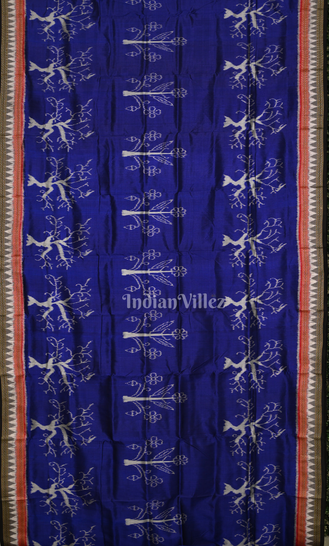 Royal Blue Black Flower Motif Odisha Ikat Khandua Silk Saree