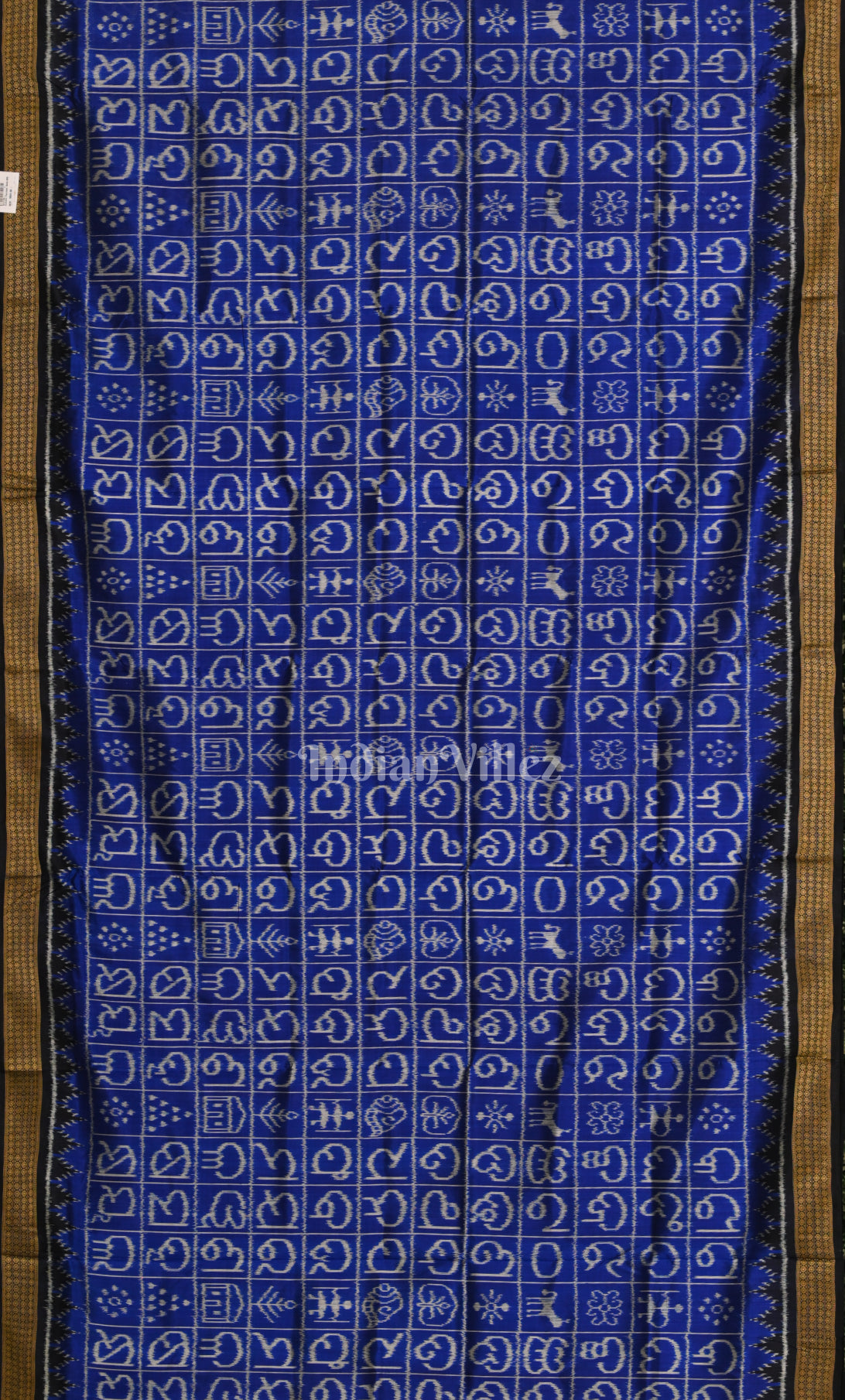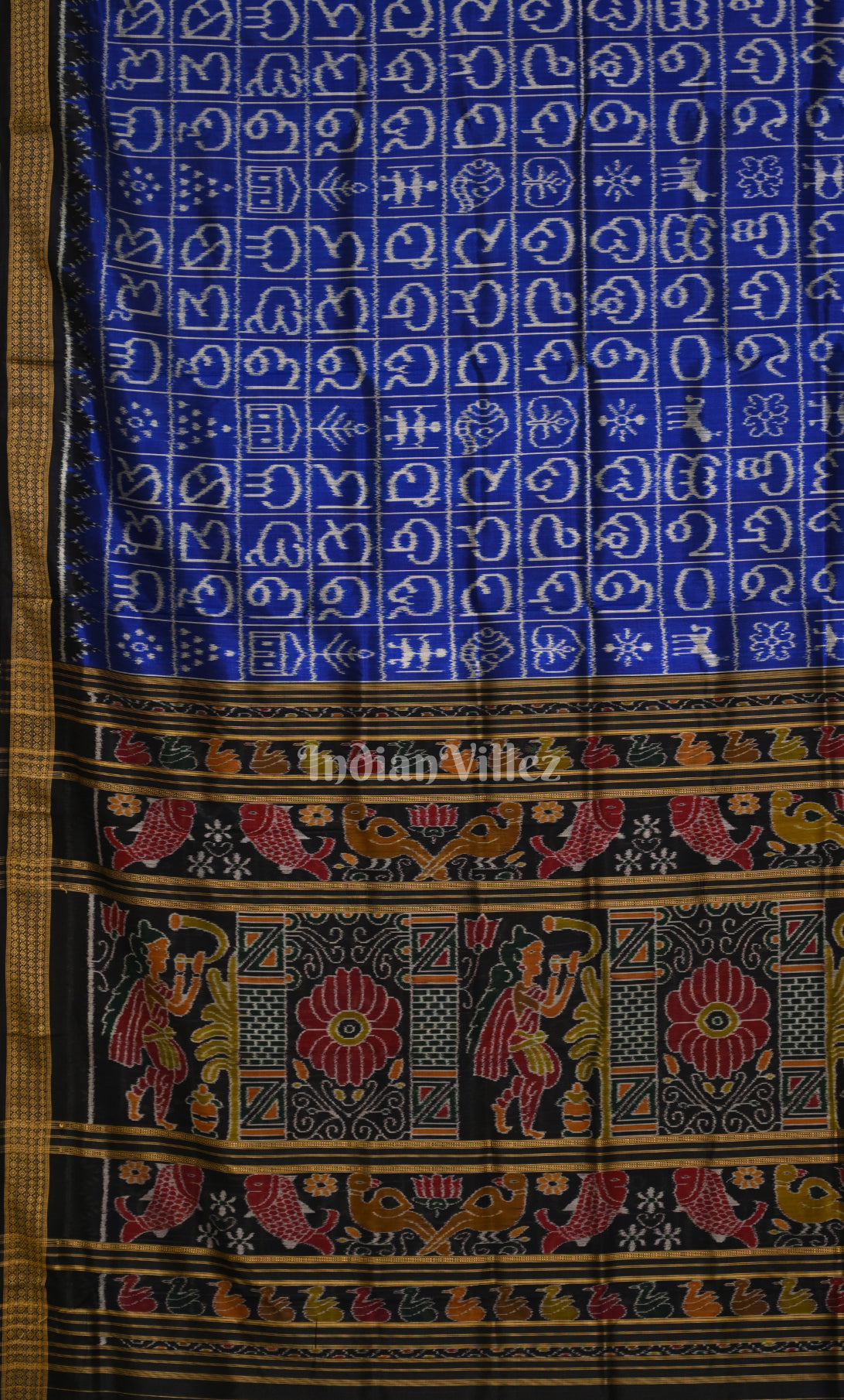 Blue Black Odia Barnamala Odisha Ikat Sambalpuri Silk saree