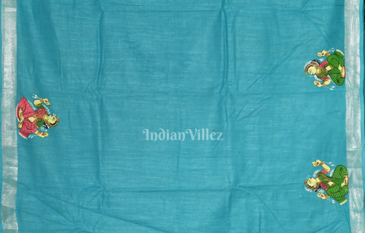 Sky Blue Doli Barat Theme Hand-Painted Pattachitra Saree