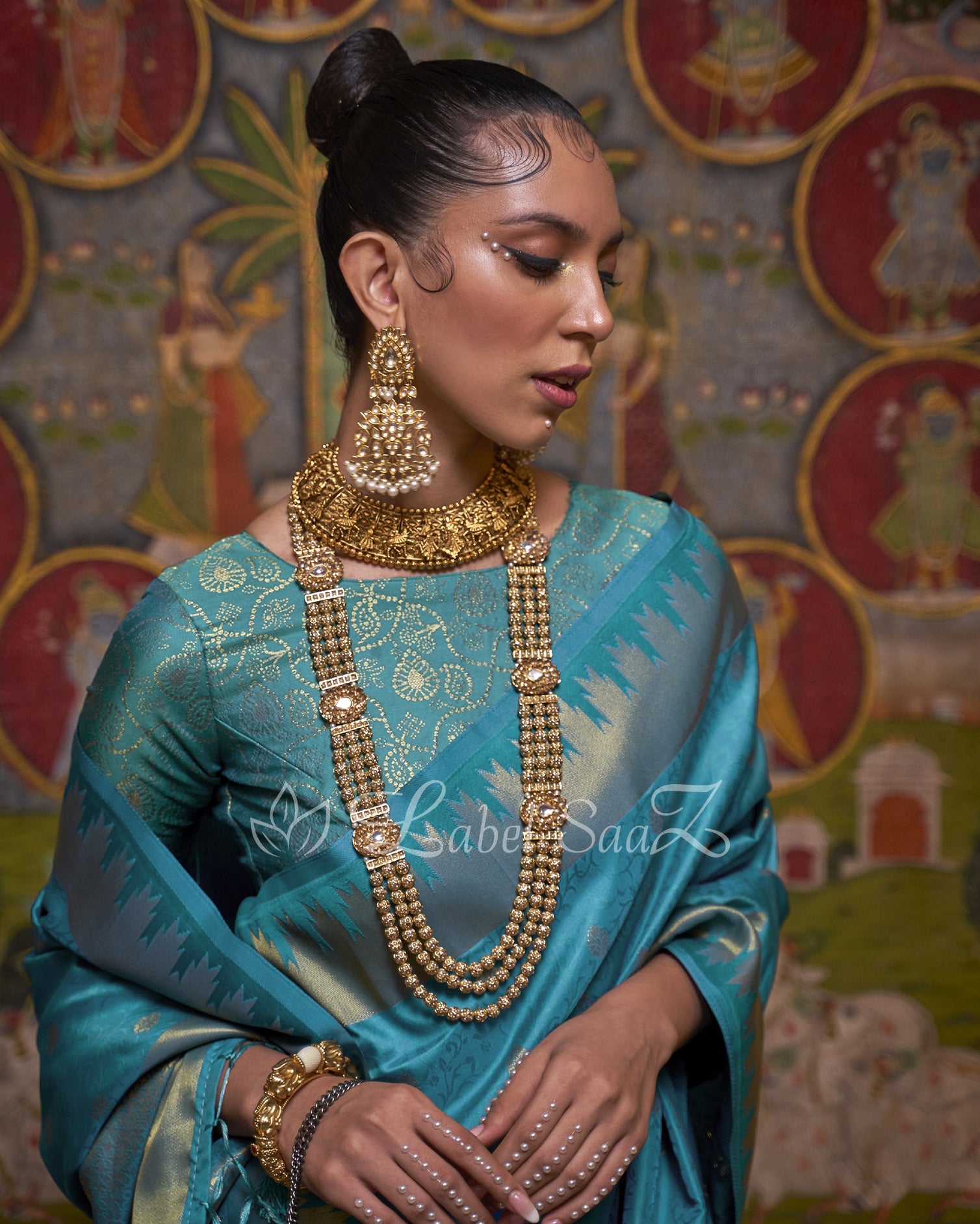 Sky Handloom Weaving Silk Saree With Heavy Blouse