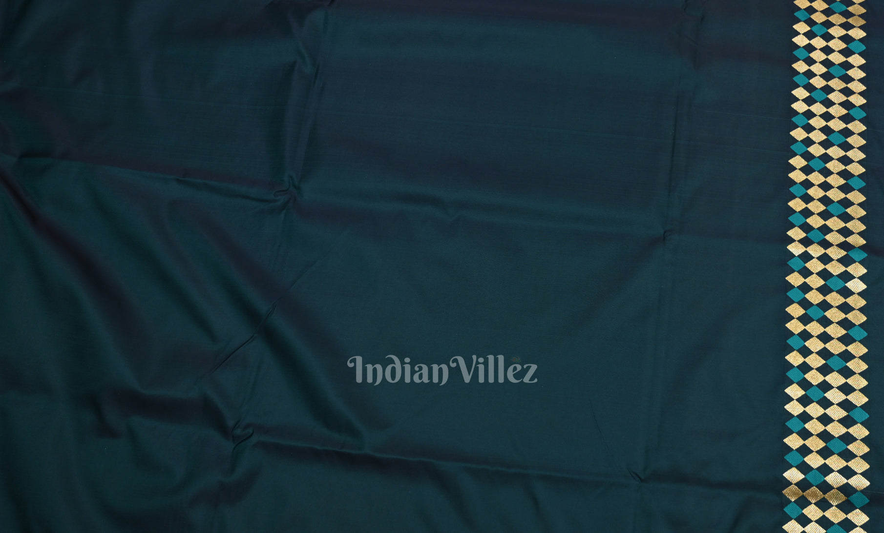 Teal Blue Mashru Satin Silk Banarasi Saree
