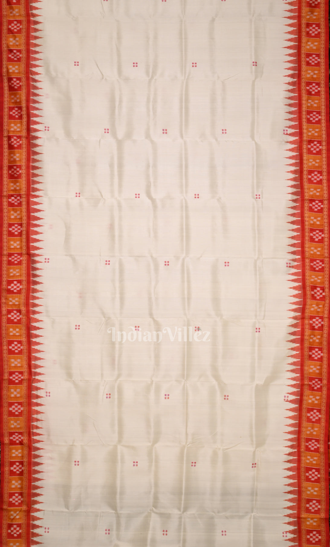 White Red Buti Design Odisha Ikat Khandua Silk Saree with Pasapalli Border