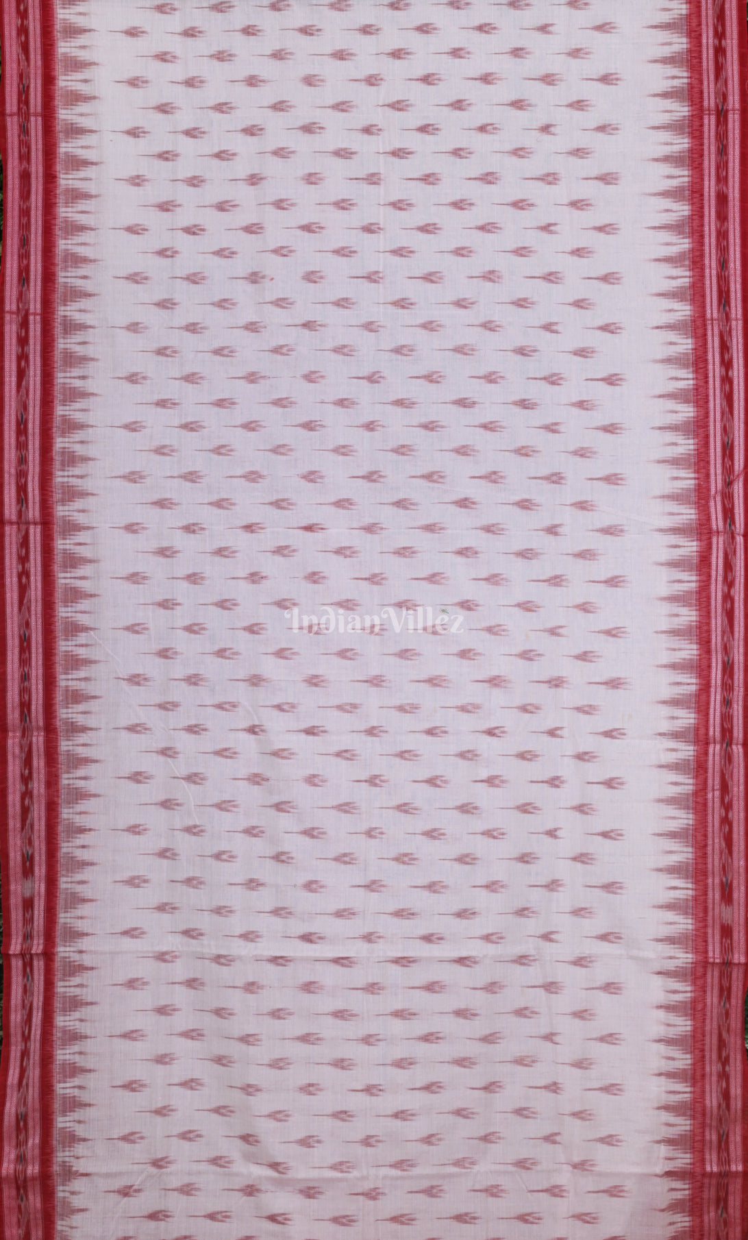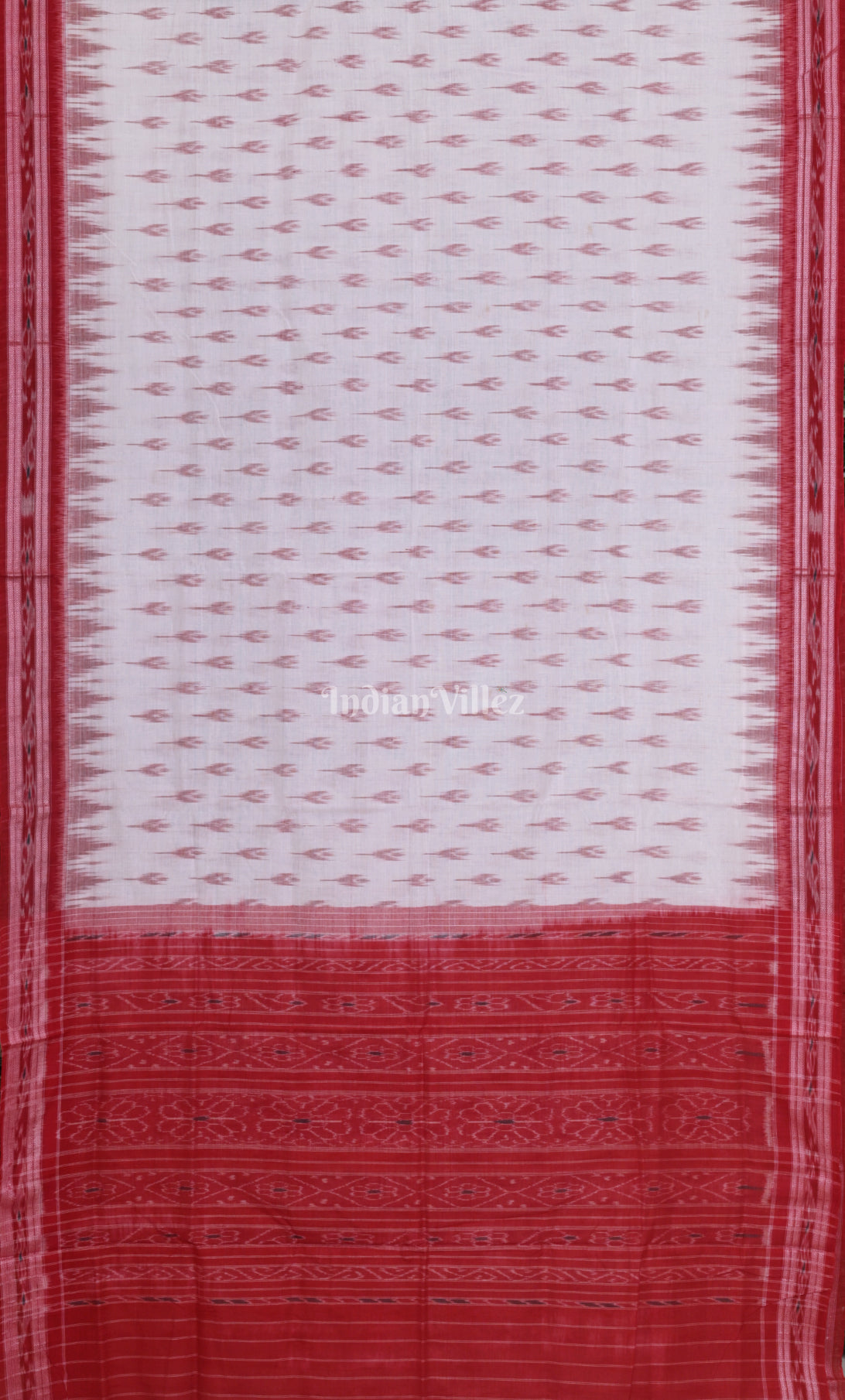 White Red Mayur Chandrika Odisha Ikat Maniabandha Cotton Saree