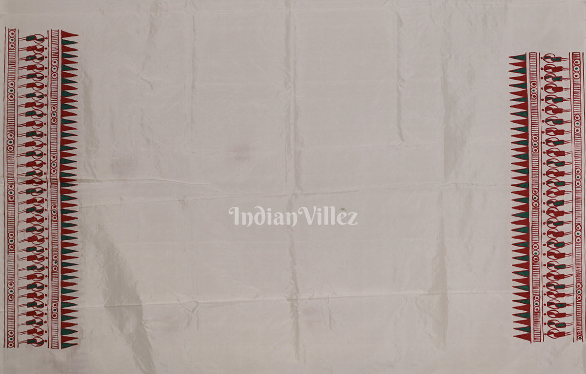 White Saura Tribal Art Hand-Painted Pattachitra Silk Saree