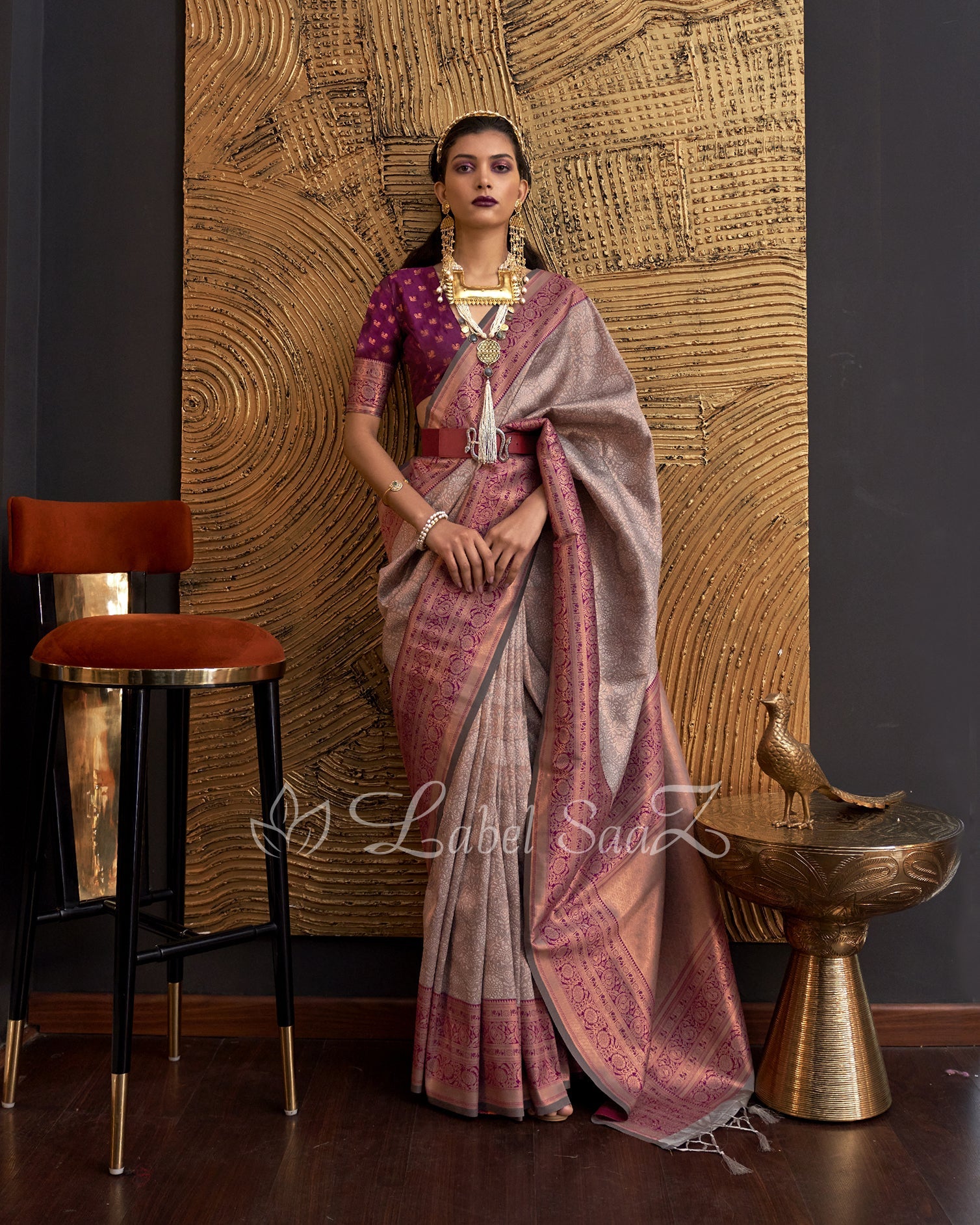 Wine Color Chaap Handloom Weaving Silk Saree