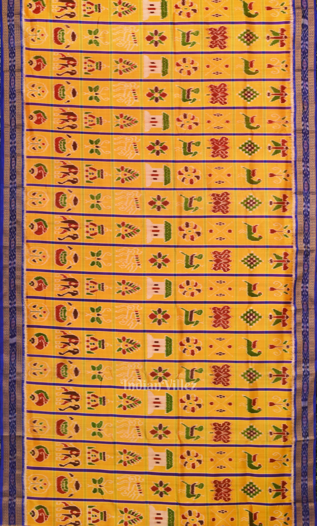 Yellow Blue Nabakothi Odisha Ikat Khandua Silk Saree