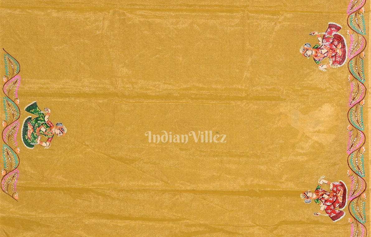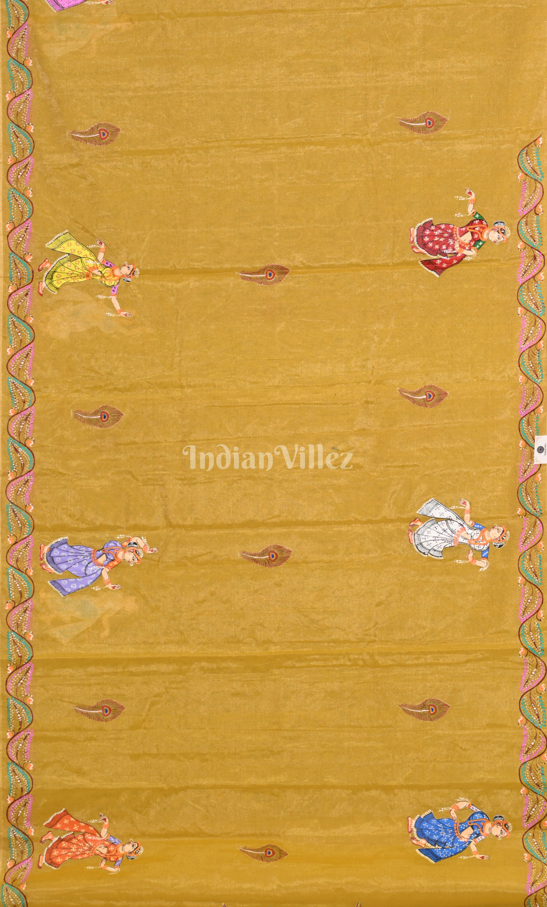 Yellow Krishna Rasa Leela Hand-Painted Pattachitra Saree