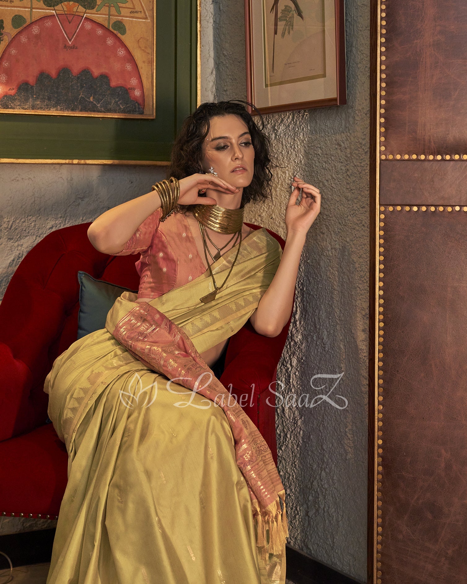 Yellow Tussar Silk Handloom Weaving Saree
